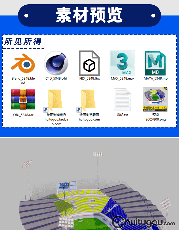 C4D卡通室内足球场场景FBX大型公共建筑MAX体育场设计建模素材OBJ