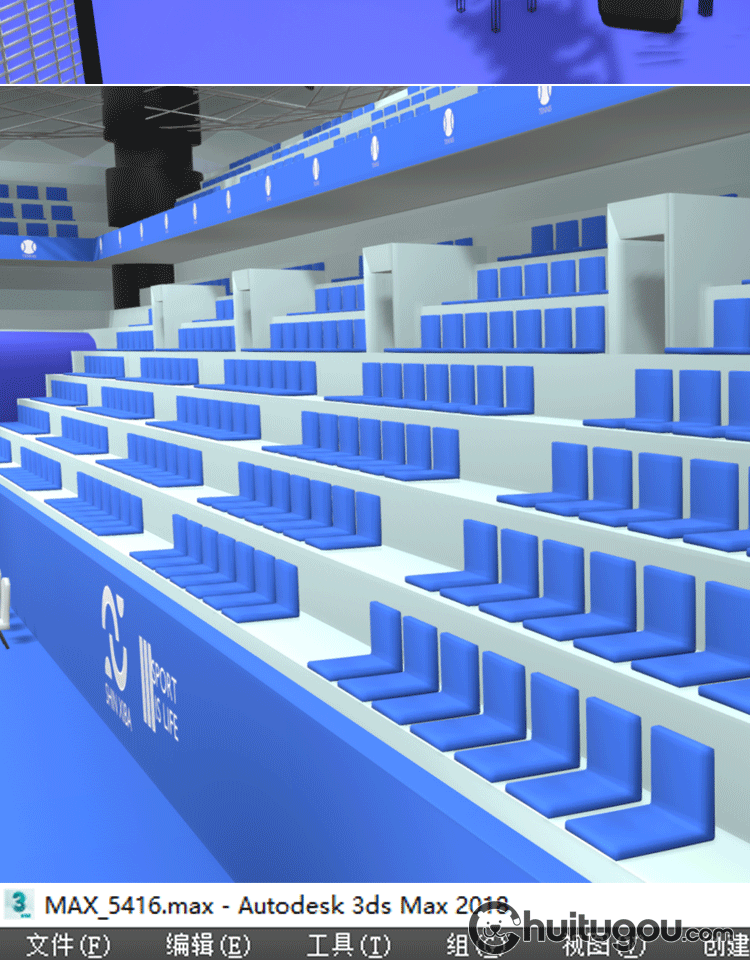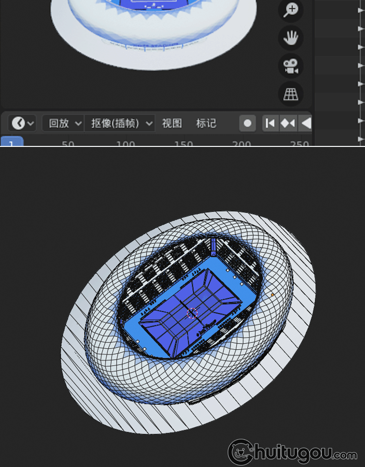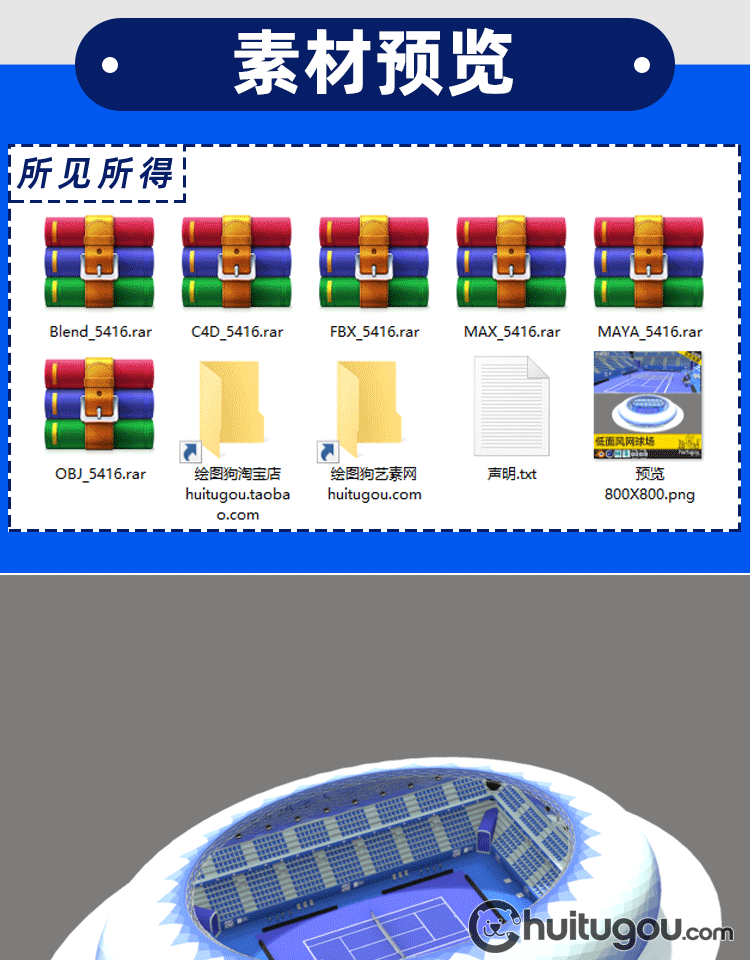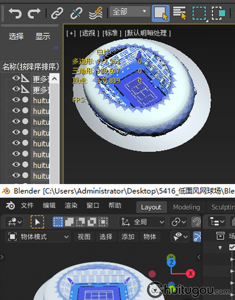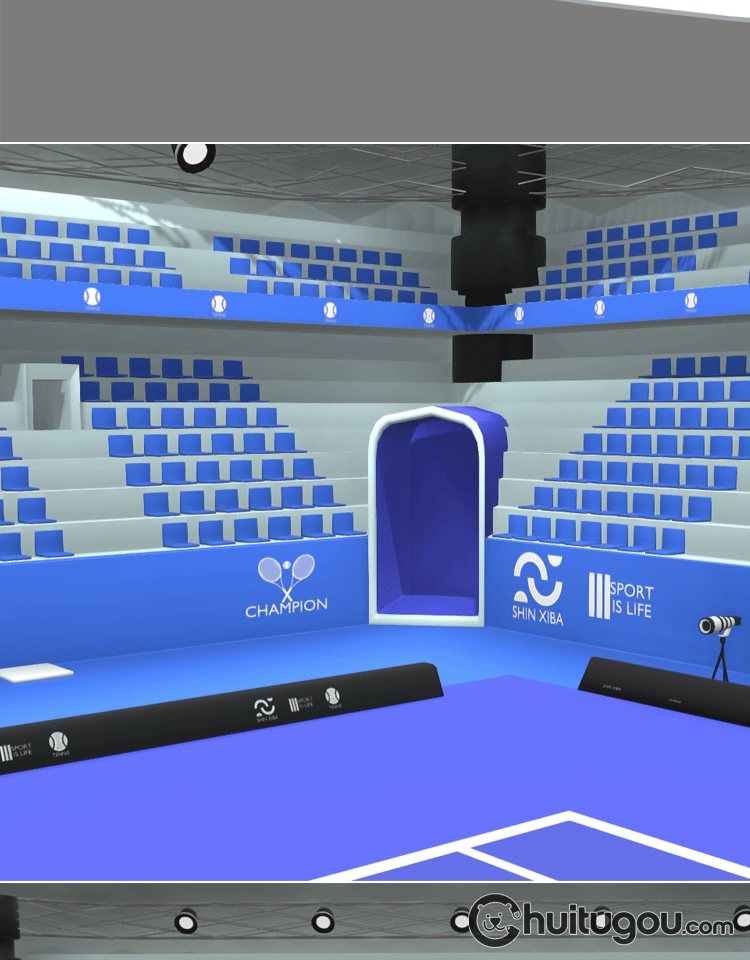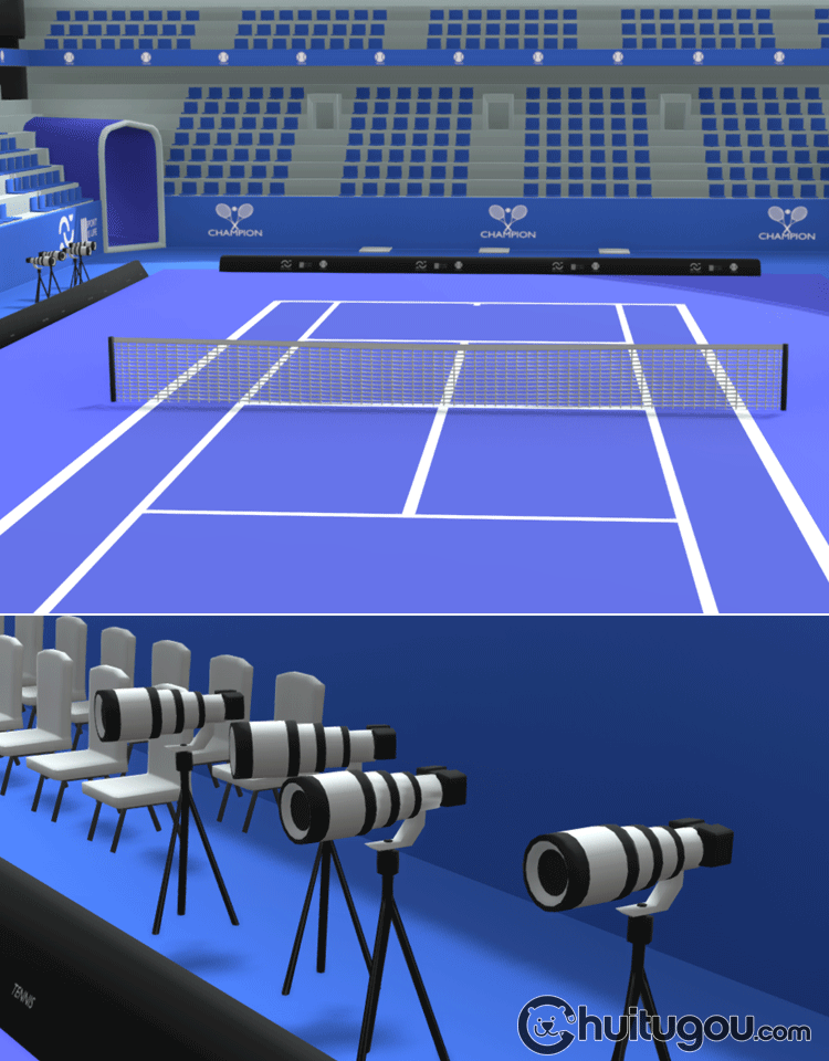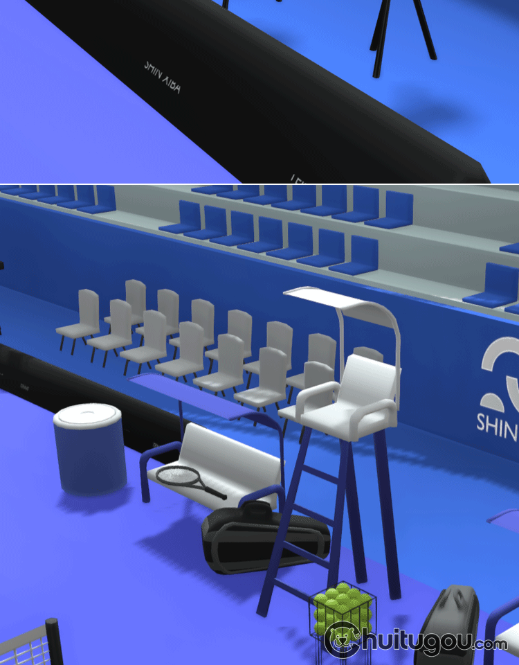 Blender低面卡通网球场C4D体育场球馆比赛场地FBX裁判席观众席OBJ
