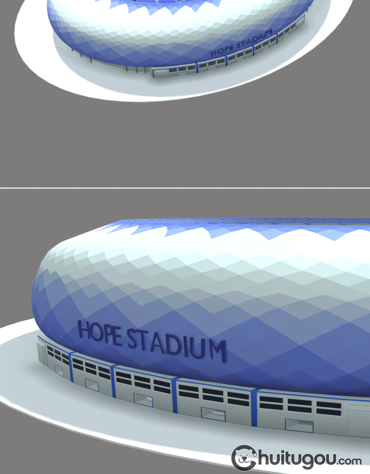 低面风格体育场C4D卡通露天足球场模型MAX遮阳棚FBX观众席路灯OBJ