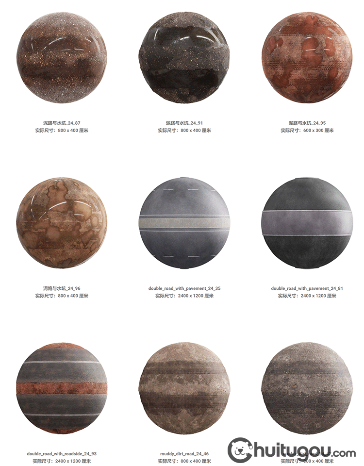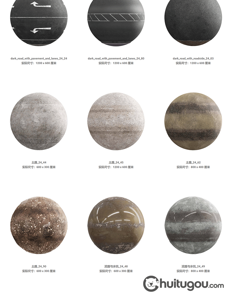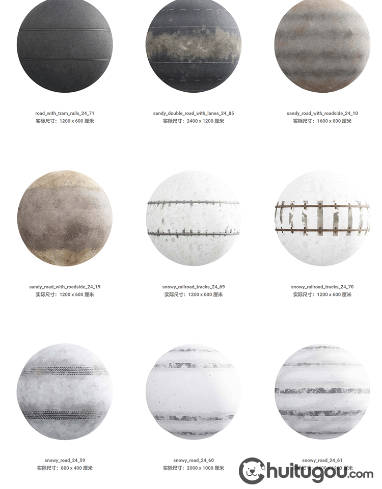 柏油路土路道路铁轨斑马线贴图CGAxis PBR Textures Roads Tracks