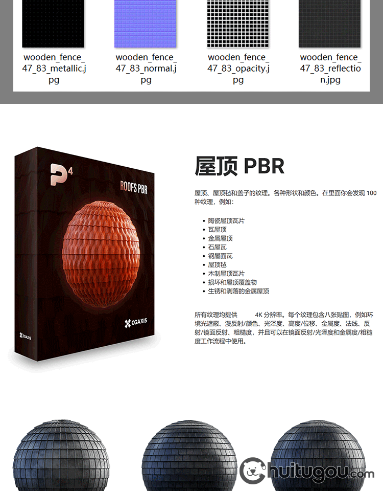 陶瓷瓦片屋顶金属石材木屋顶材质贴图CGAxis PBR Textures Roofs
