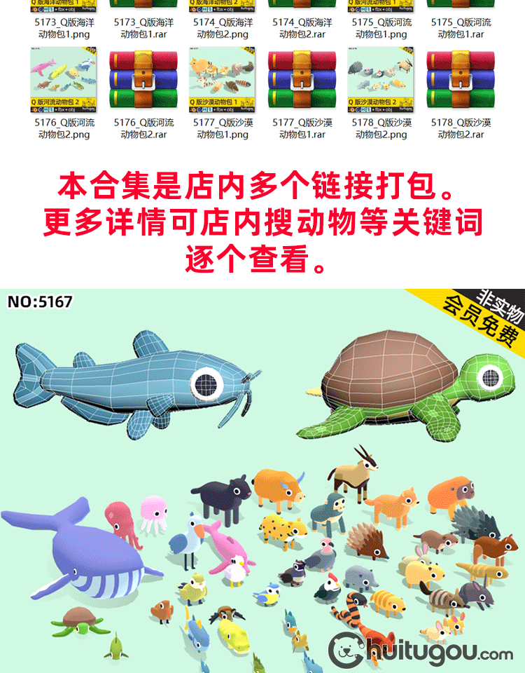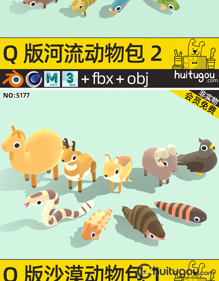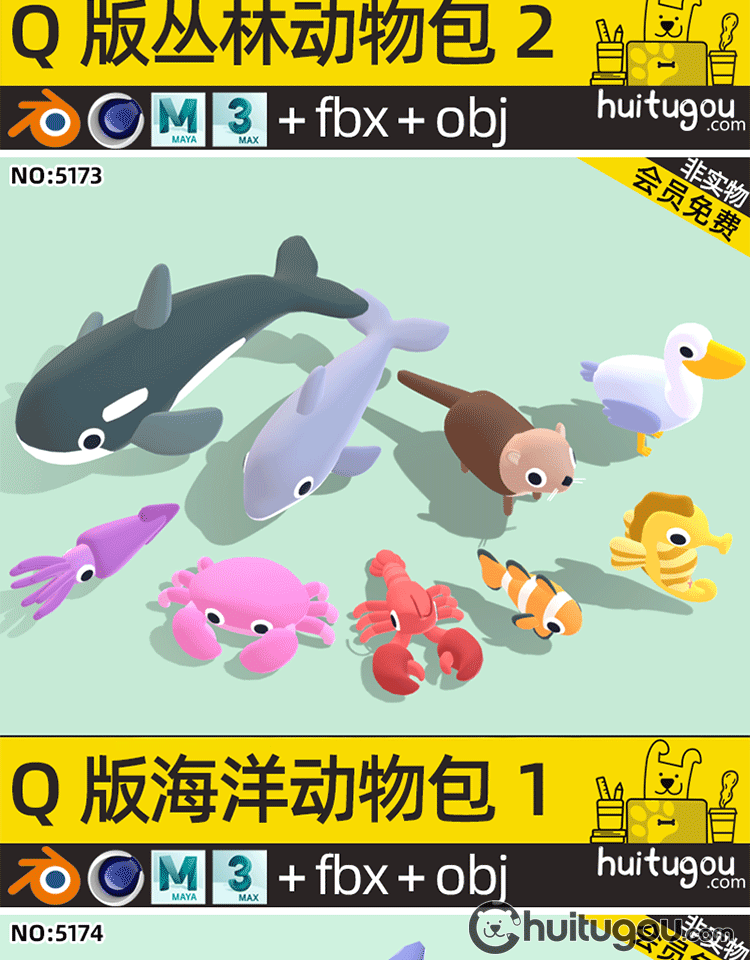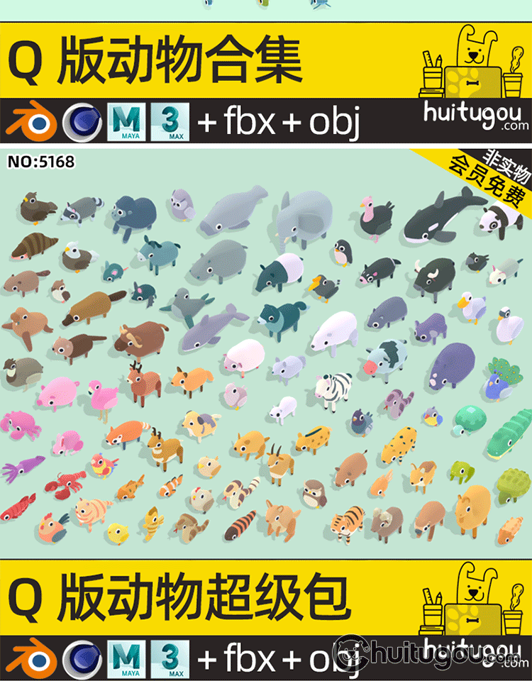 LOWPOLY动物超级包C4D卡通鱼儿鸟类FBX森林海洋沙漠生物3D模型OBJ