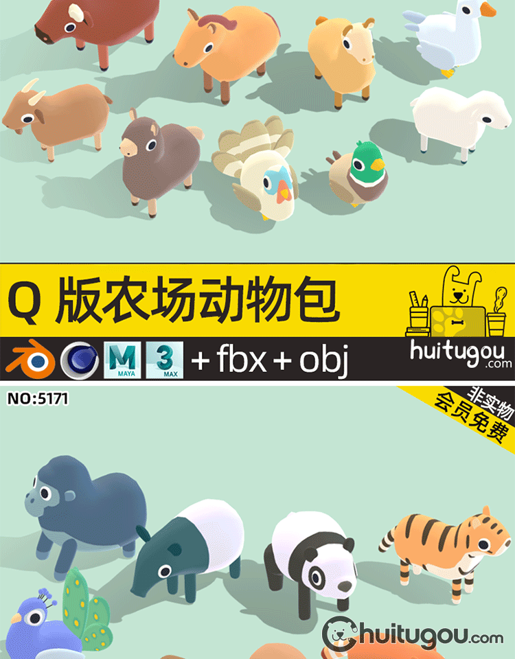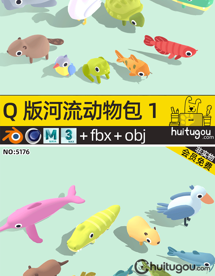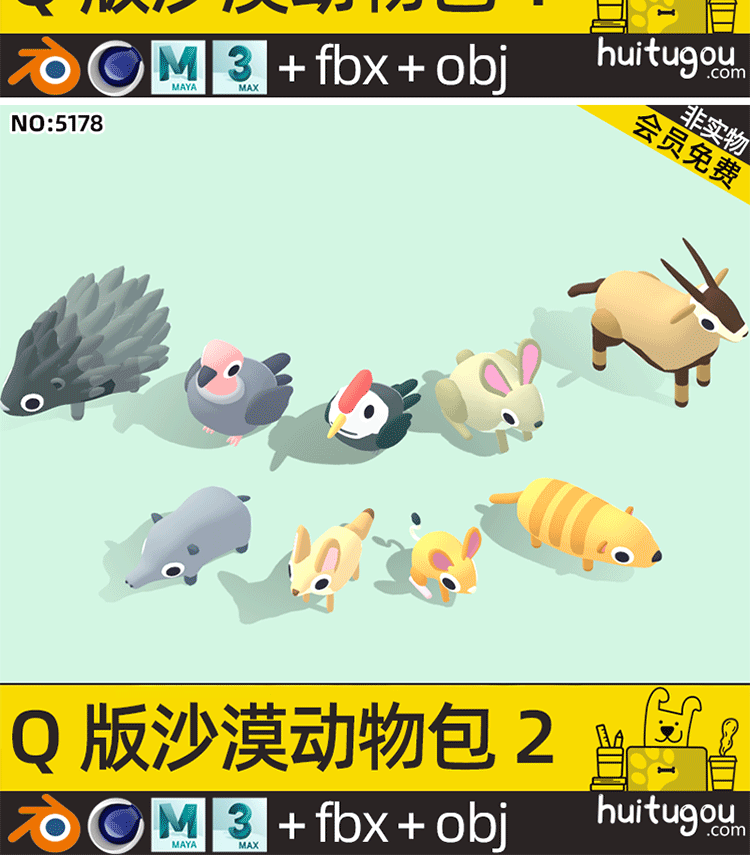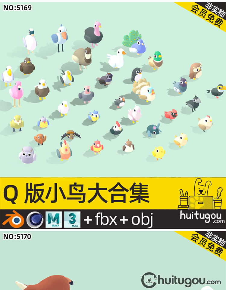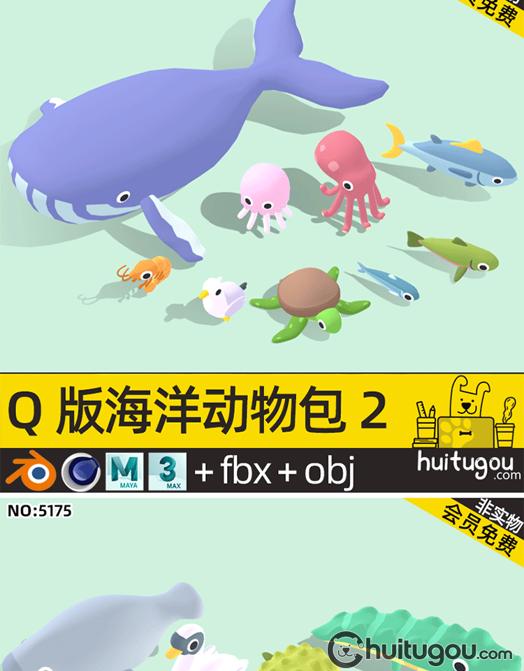 LOWPOLY动物超级包C4D卡通鱼儿鸟类FBX森林海洋沙漠生物3D模型OBJ