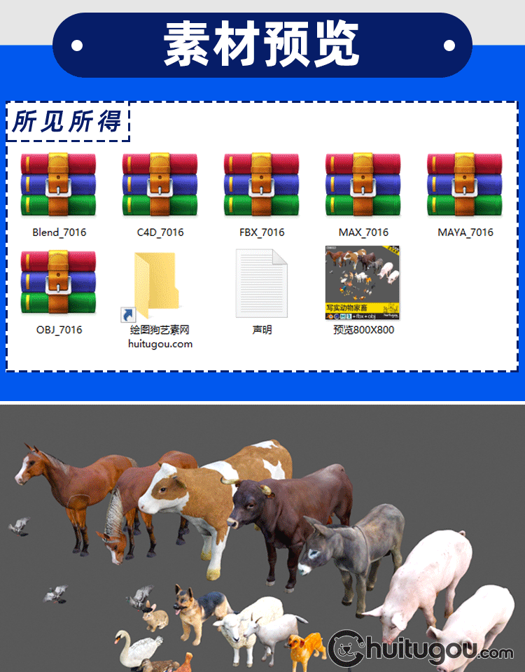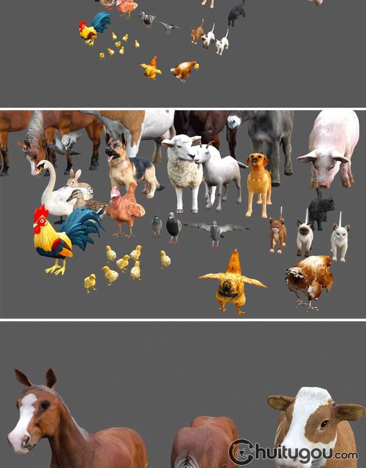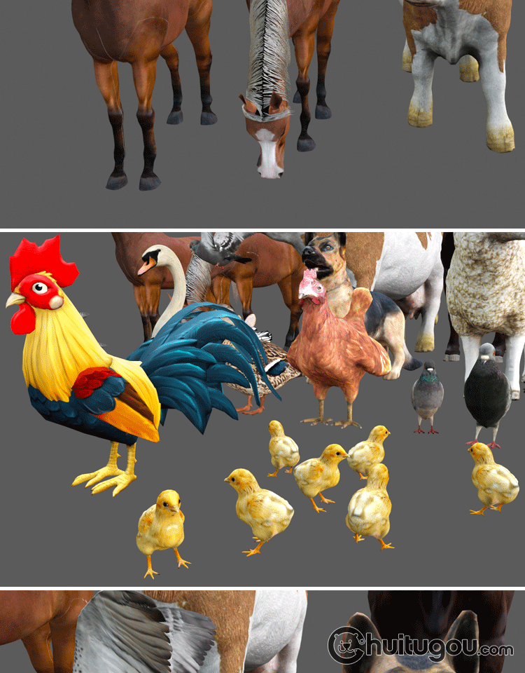 3D静态写实家禽模型C4D牛马驴猪Blender鸽子兔狗FBX羊猫鸡鸭鹅OBJ