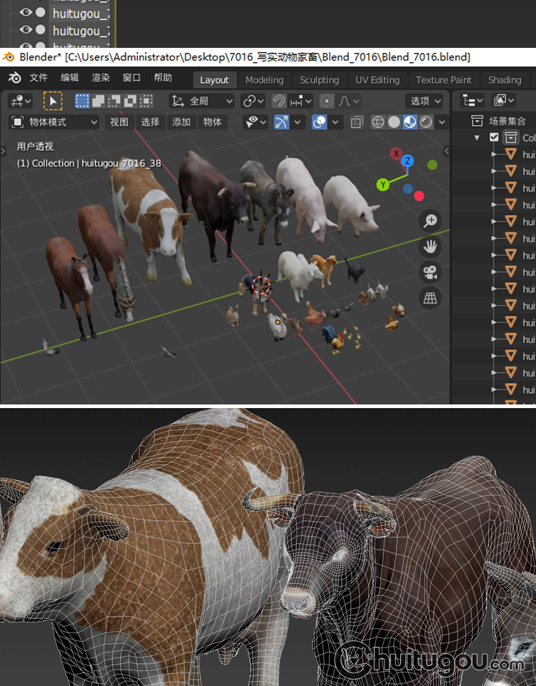 PBR写实家禽模型C4D动物猫鸡牛驴狗马猪兔MAYA建模渲染FBX素材OBJ