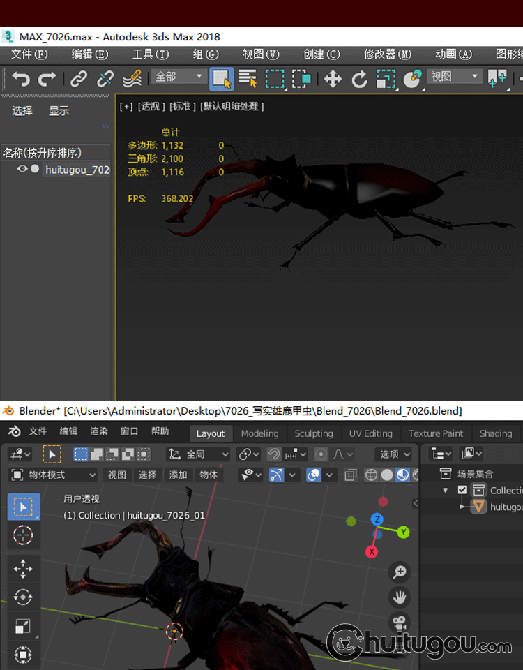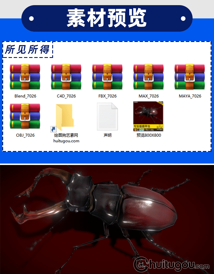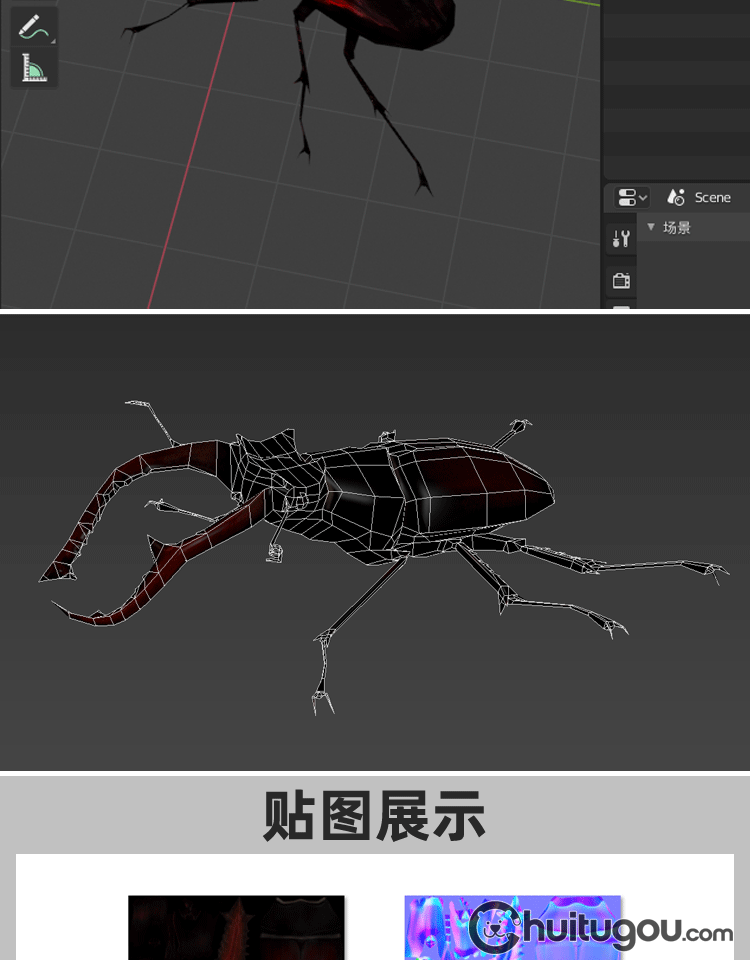 3D鹿角甲虫写实模型C4D虫子Blender动物FBX格式OBJ设计素材源文件