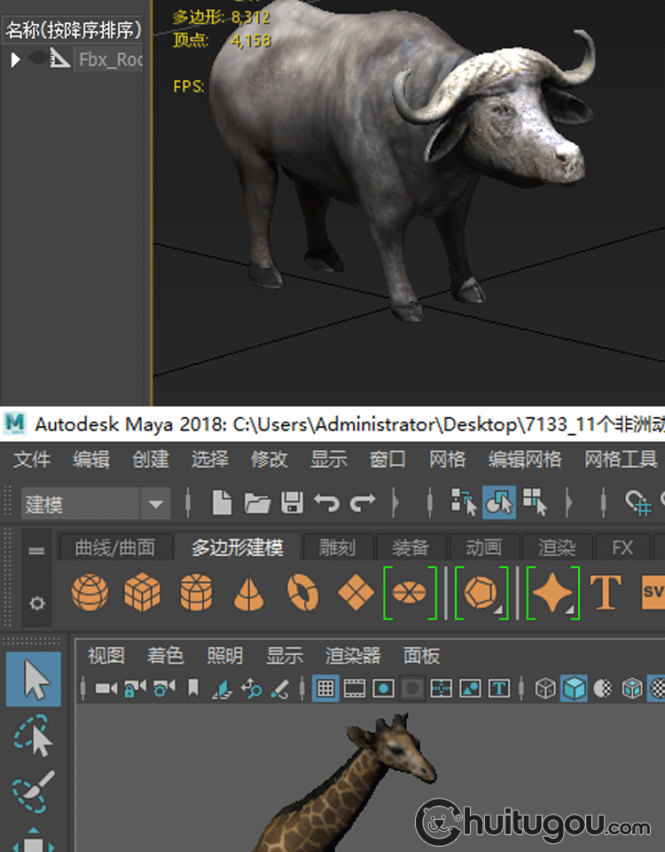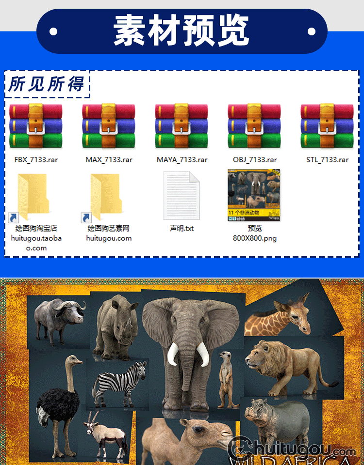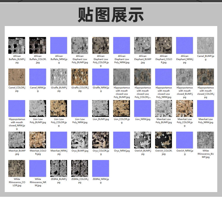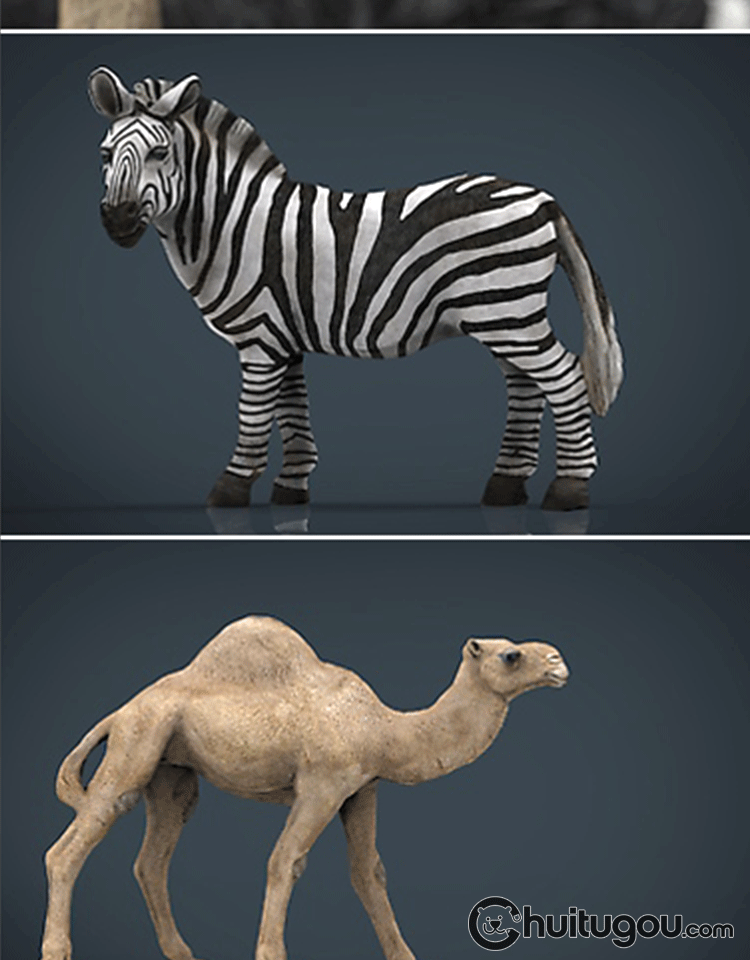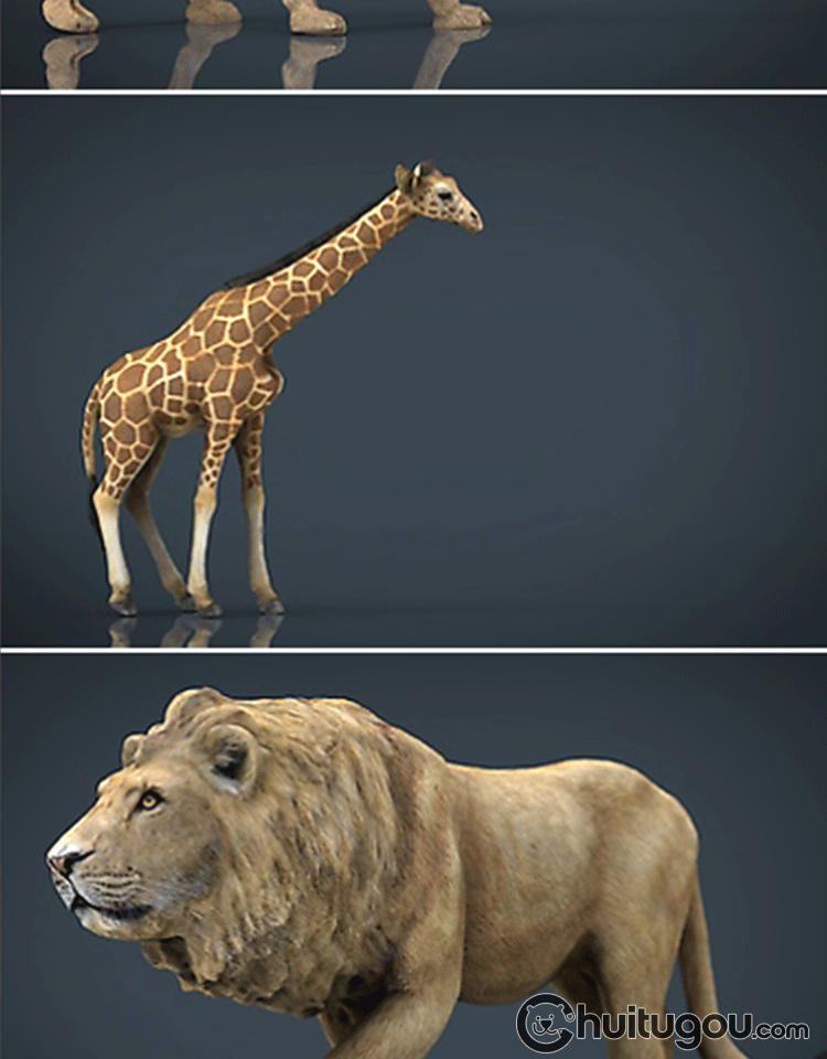 写实野生动物3D模型C4D斑马老虎狮子羊MAX长颈鹿大象骆驼FBX素材