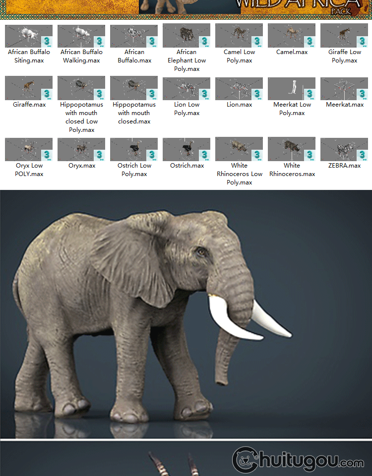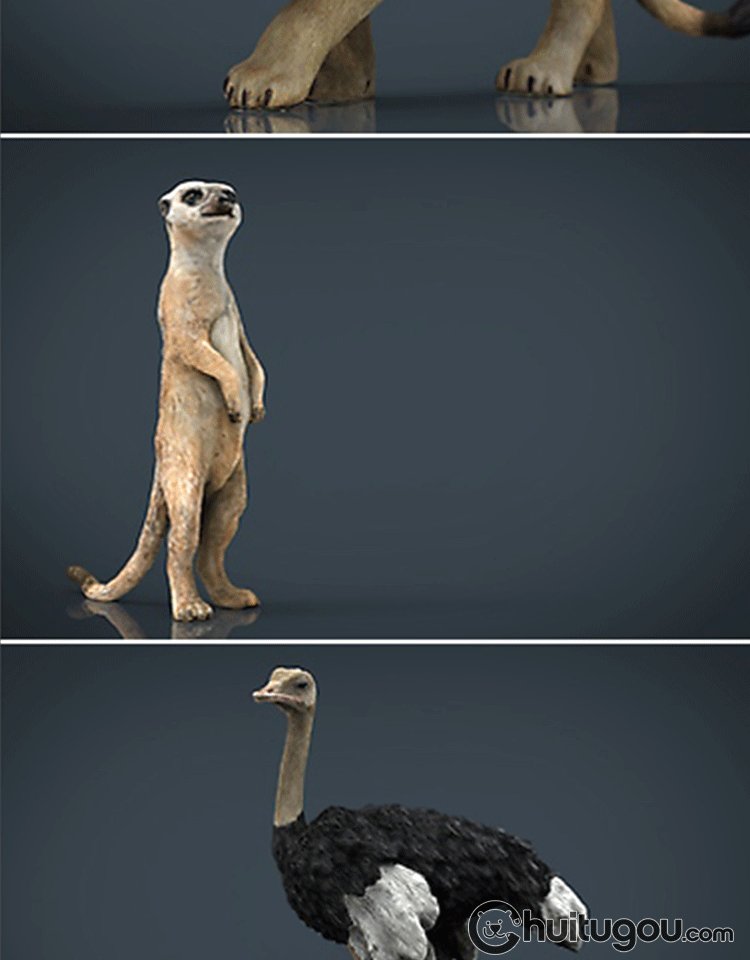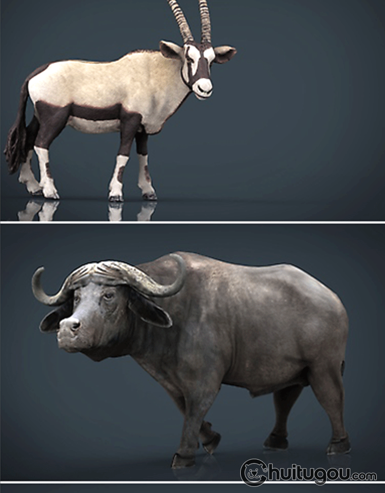 写实PBR非洲动物3D模型MAX大象羚羊水牛狮子鸵鸟斑马狮子犀牛素材