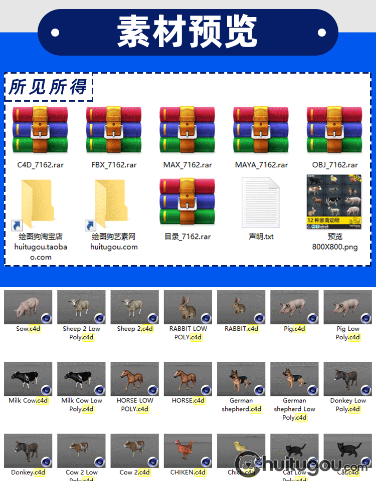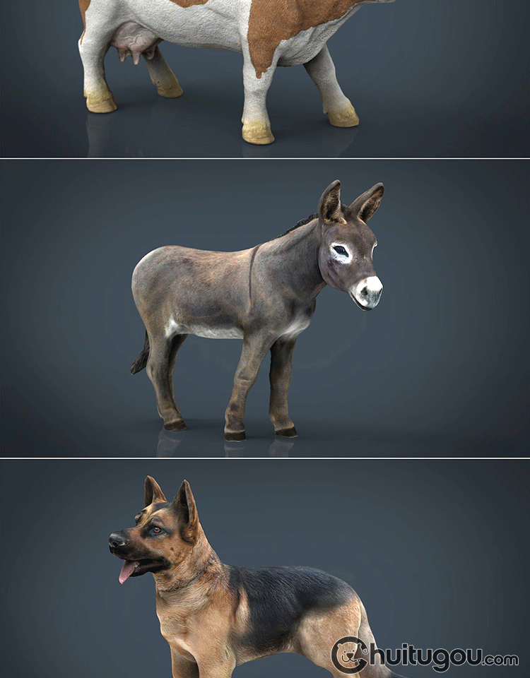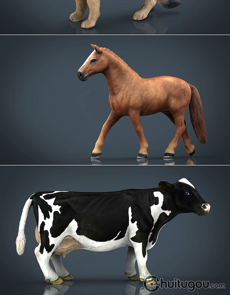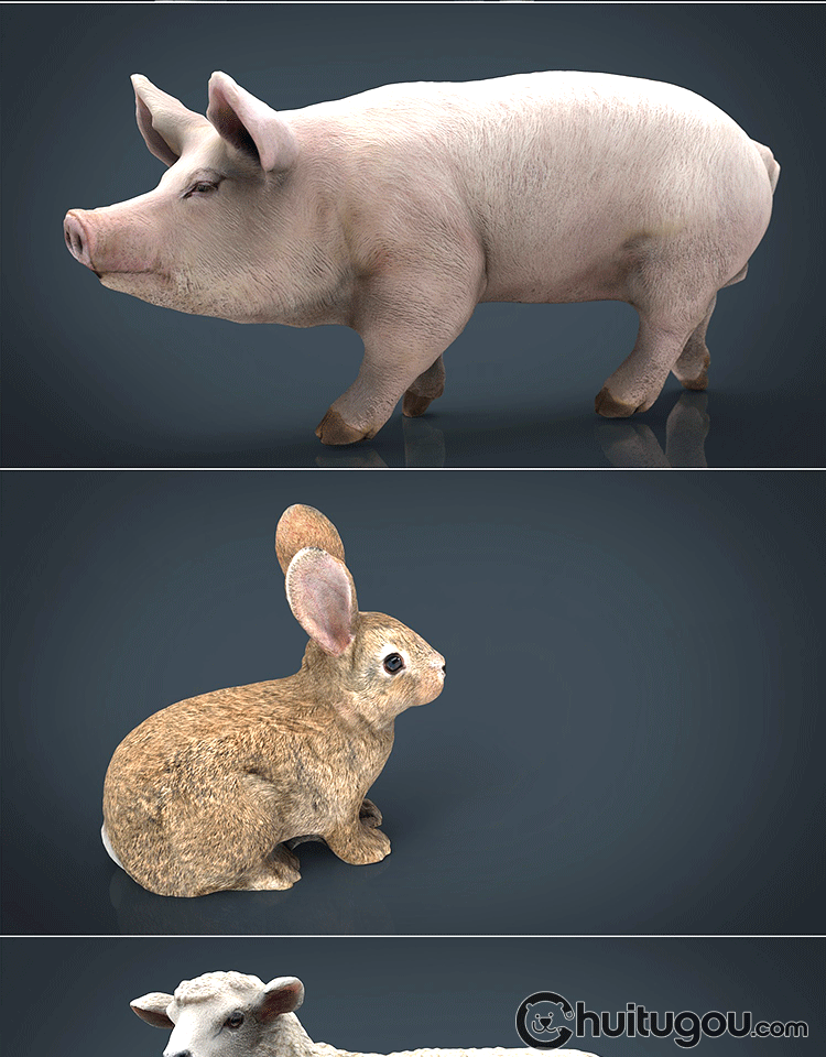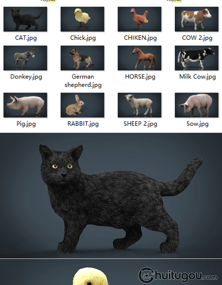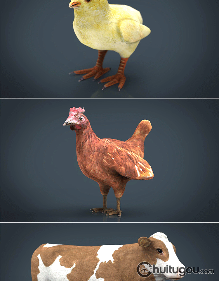 PBR写实家禽模型C4D动物猫鸡牛驴狗马猪兔MAYA建模渲染FBX素材OBJ
