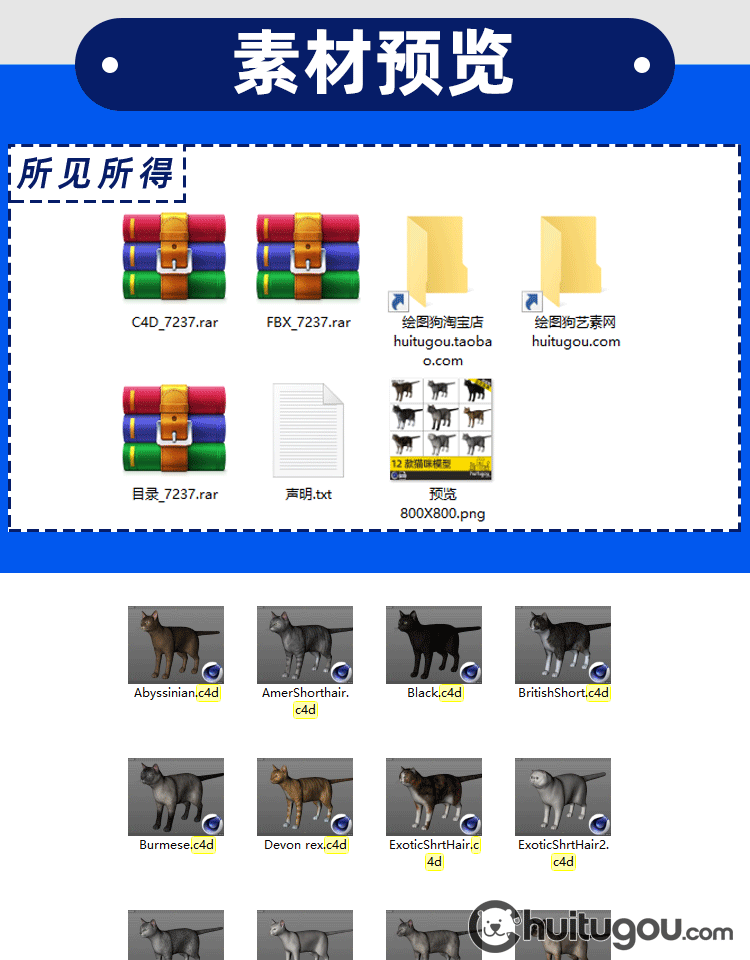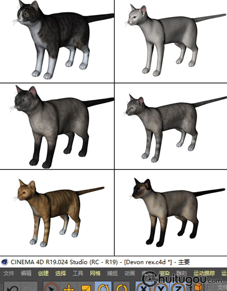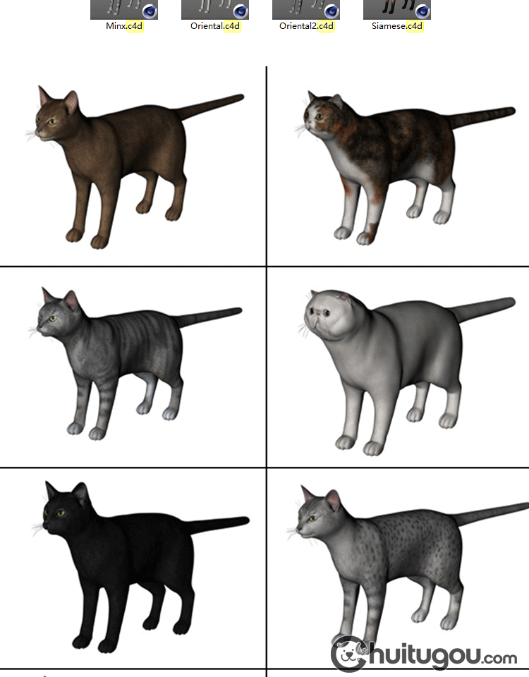 C4D写实小猫模型FBX动物猫咪花猫黑猫黄猫OBJ三维建模设计3D素材