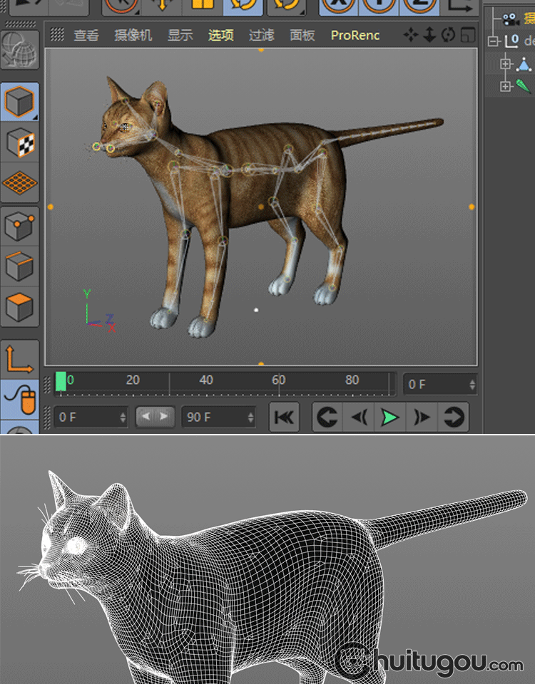 C4D写实小猫单体模型带骨骼绑定FBX动物黑灰色猫咪豹猫3D模型素材