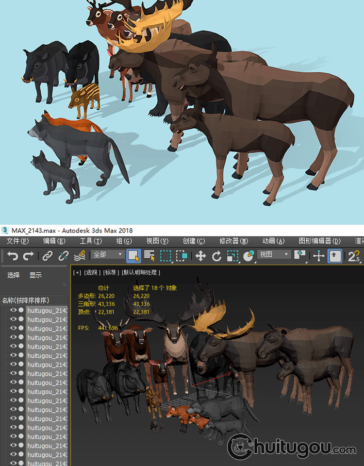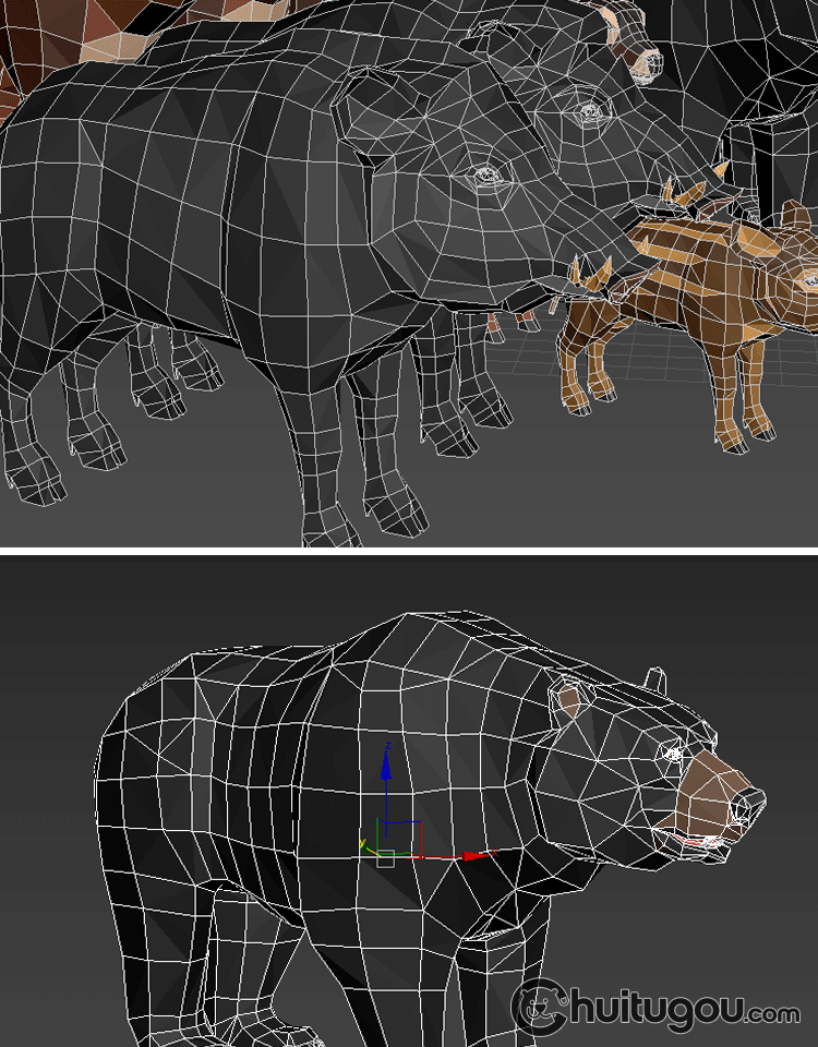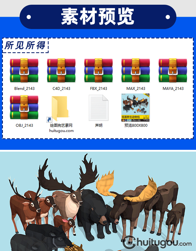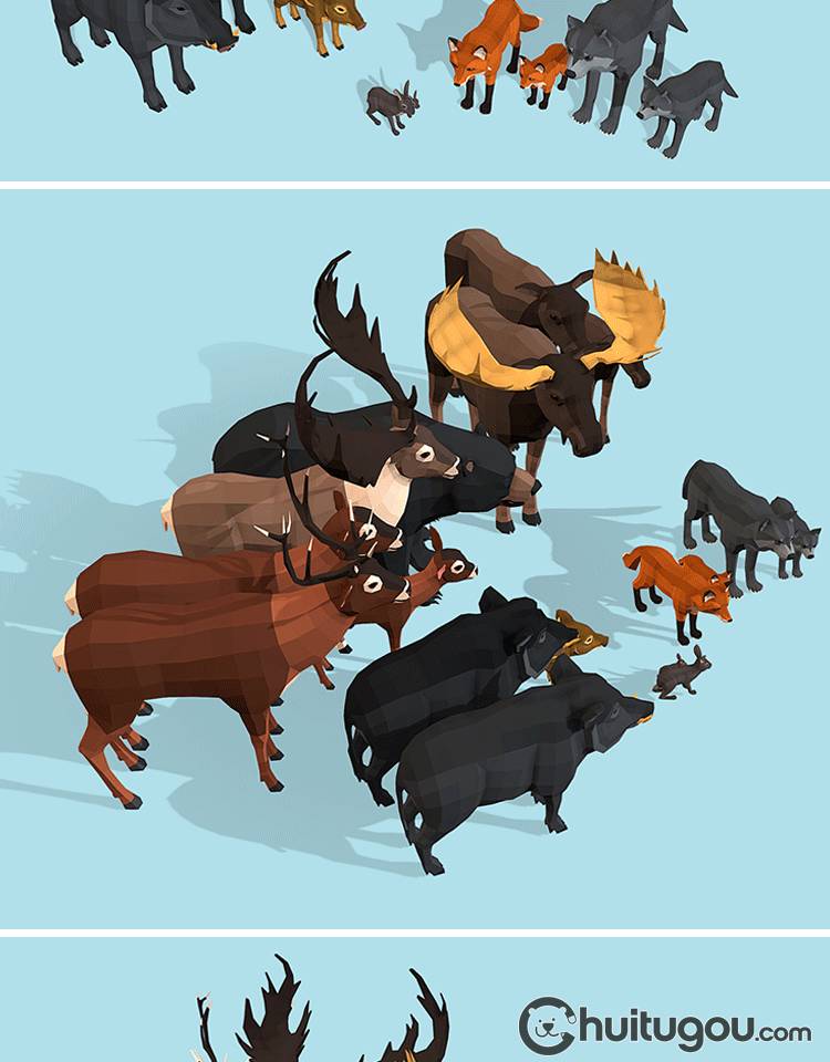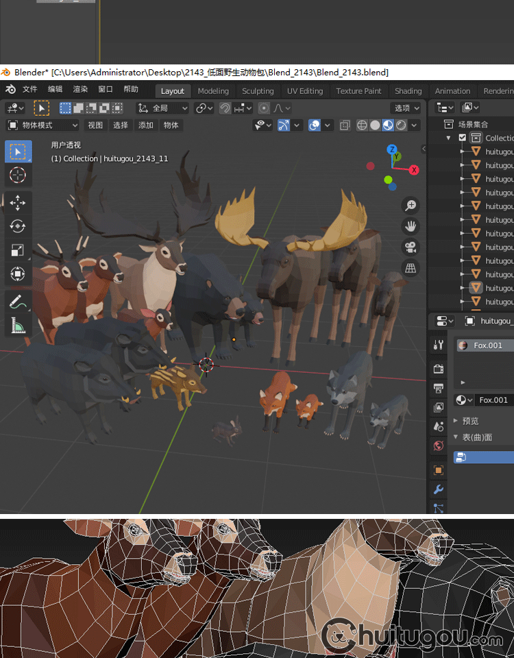 低面 野生动物包C4D卡通模型Blend野猪兔子狼狐狸熊鹿FBX OBJ素材