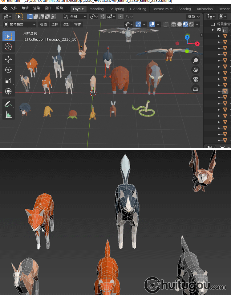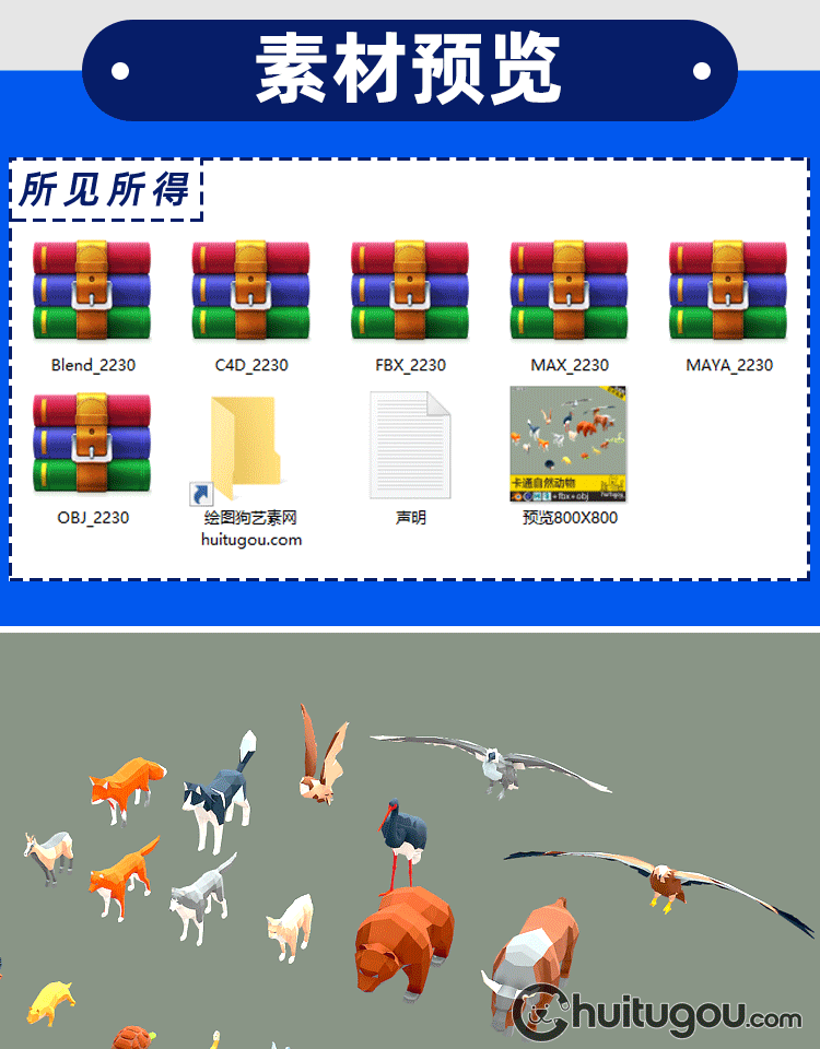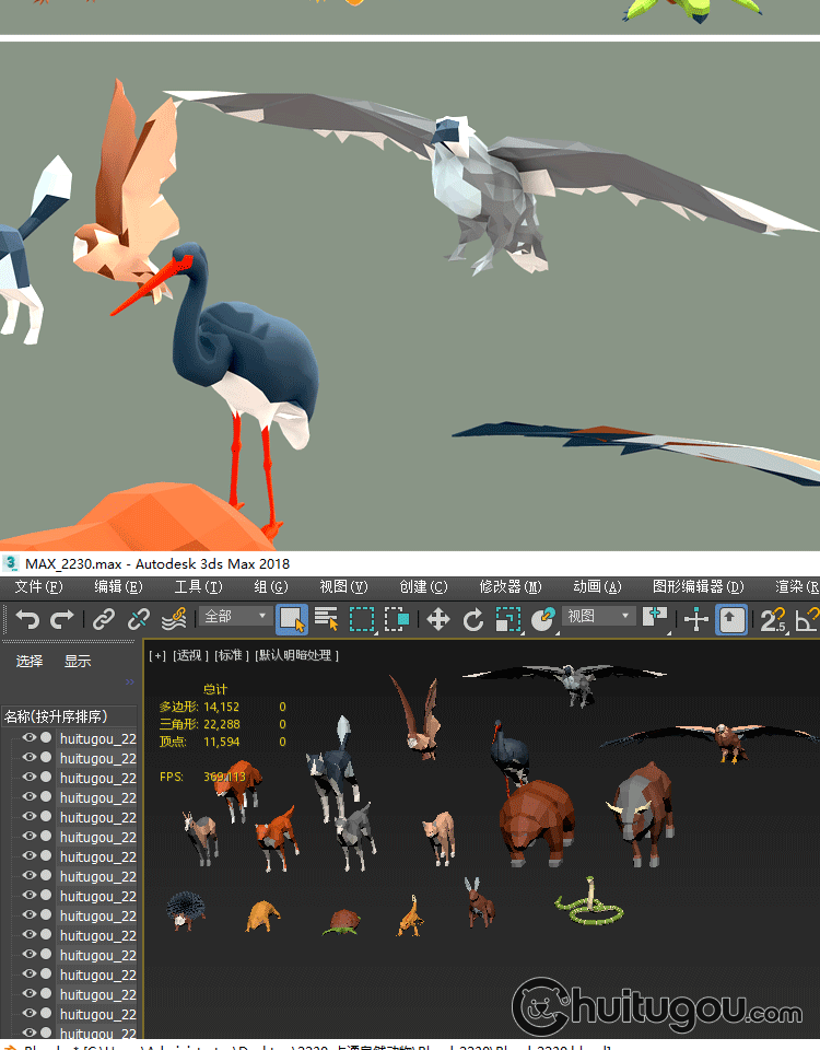3D低面动物模型MAX熊小鸟狗FBX鹰刺猬蜥蜴蛇狐狸牛兔鹳土拨鼠OBJ