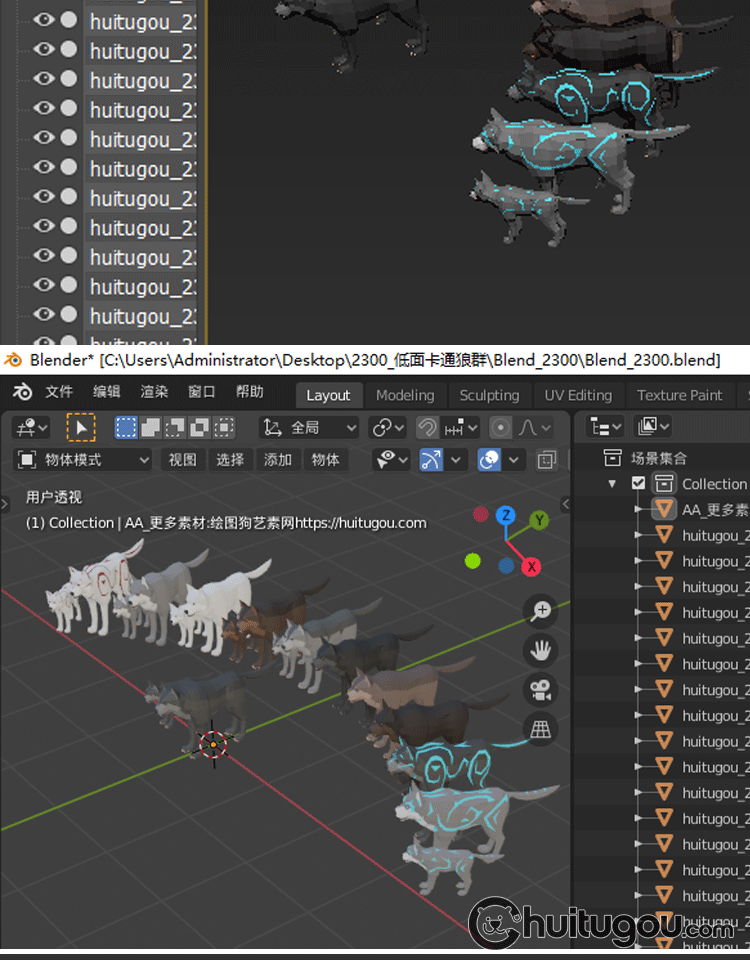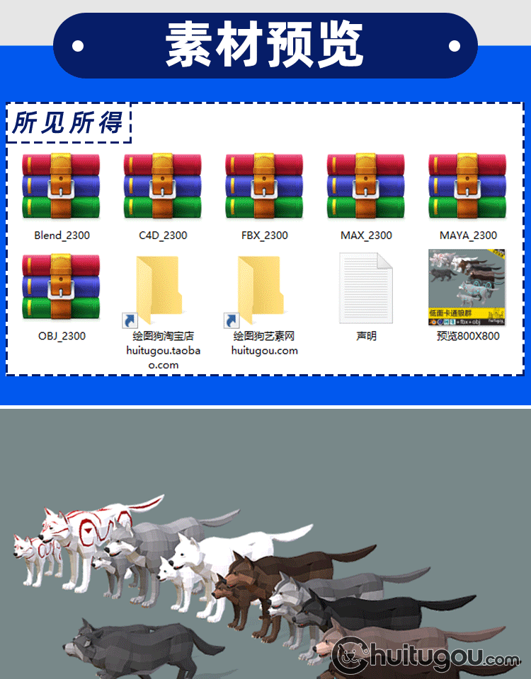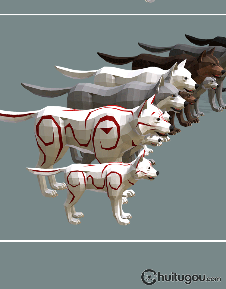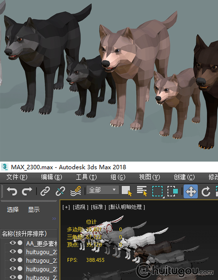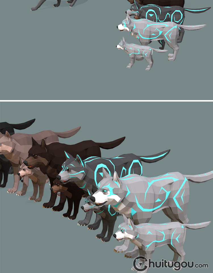 低多边形LOWPOLY狼模型C4D卡通狼群mb动物MAX大灰狼3D素材文件OBJ