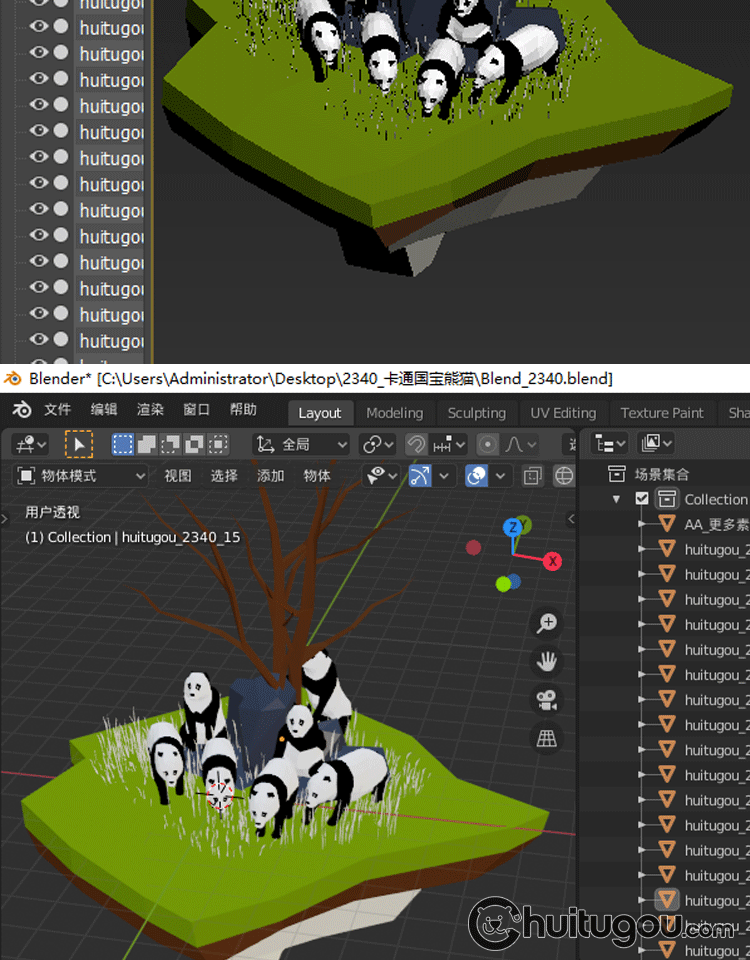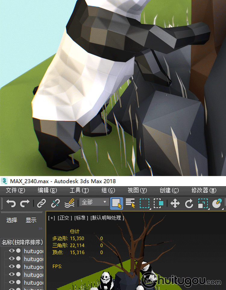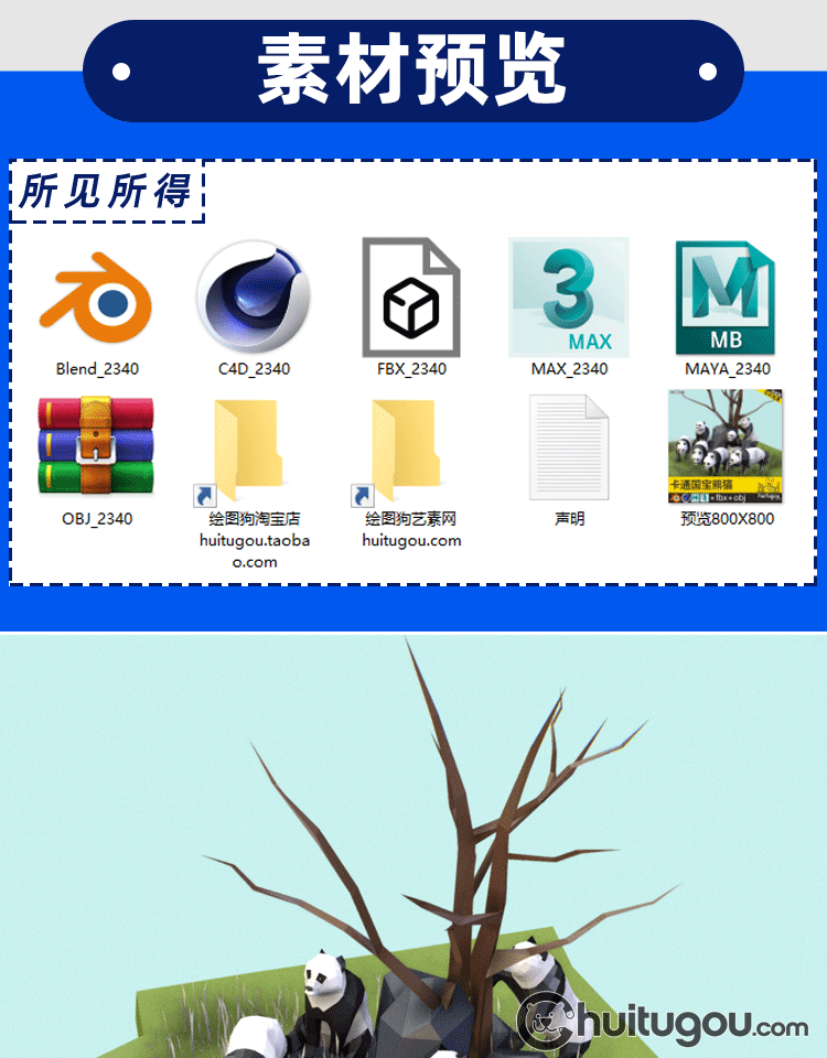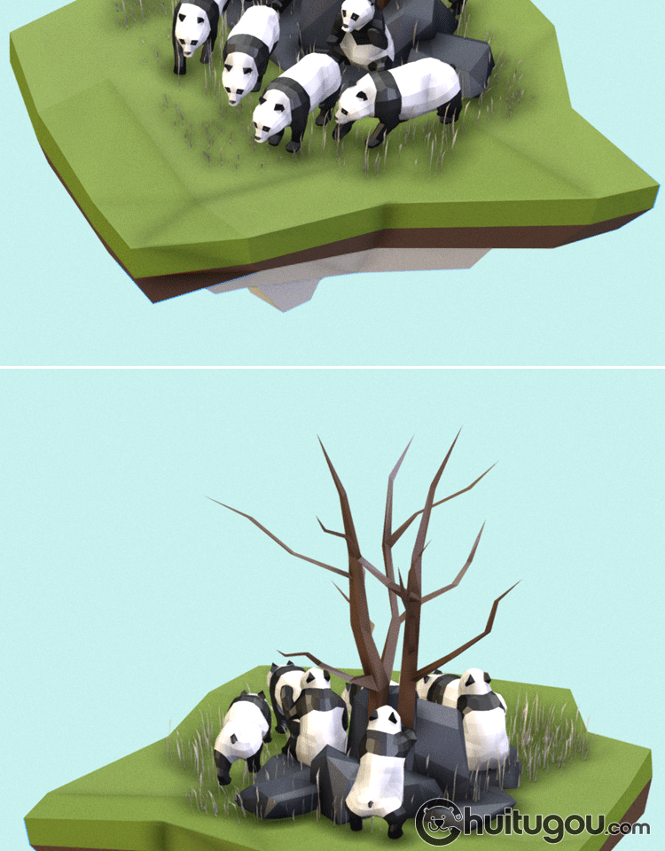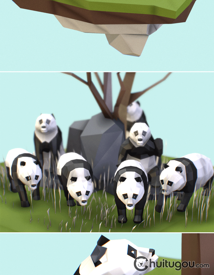 多边形风格3D大熊猫模型C4D卡通可爱动物MAYA低模MAX素材文件OBJ