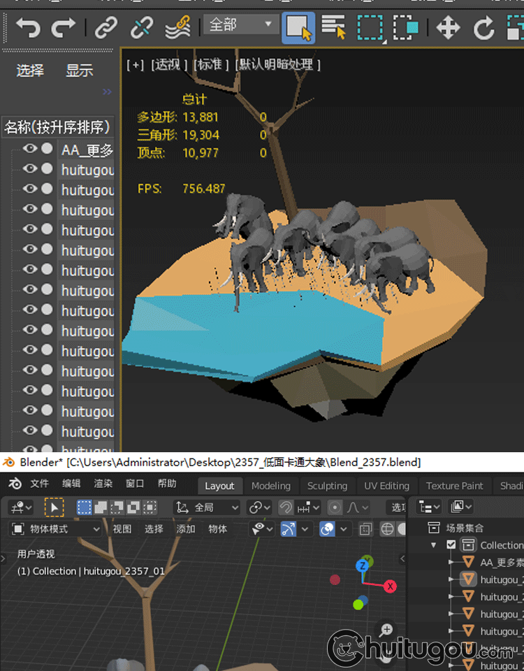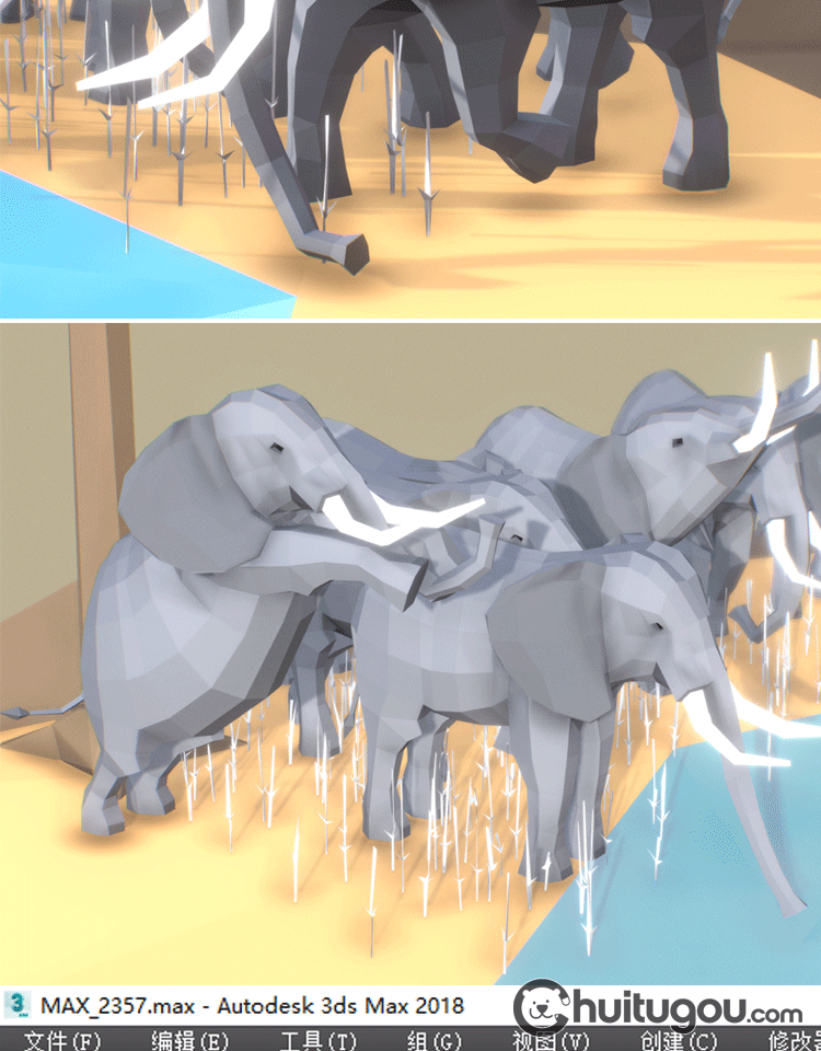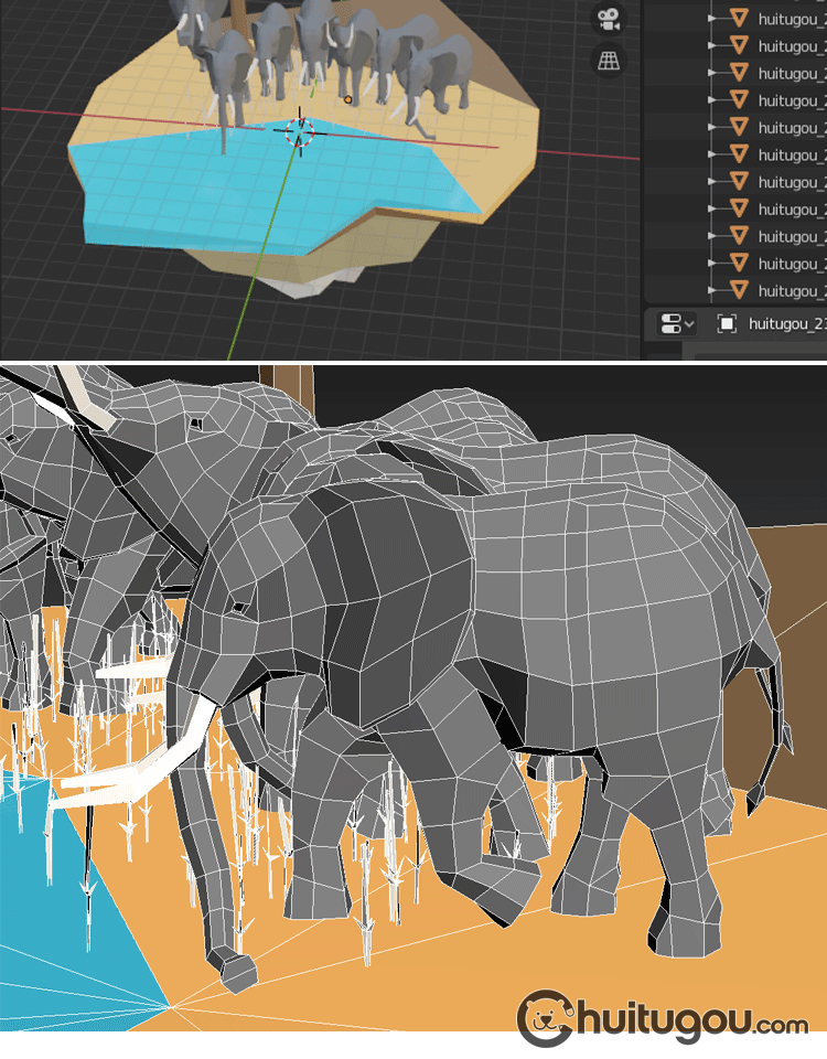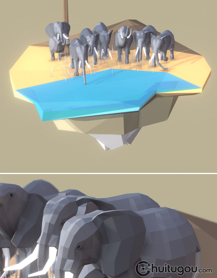 低面大象模型C4D卡通象群Blender非洲动物mb多边形风格风格3D素材