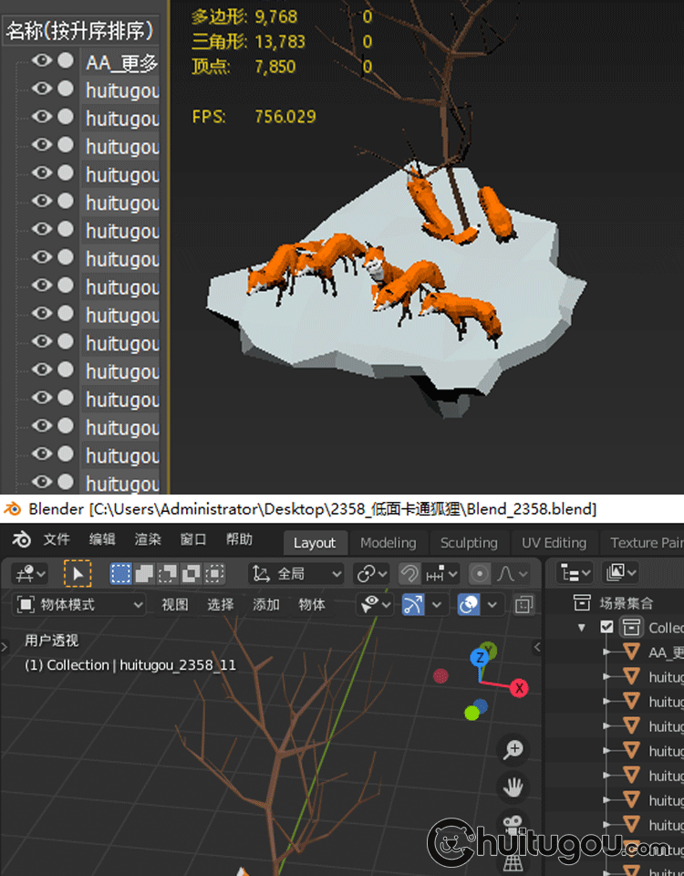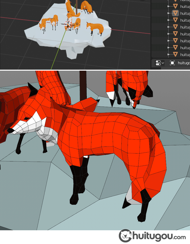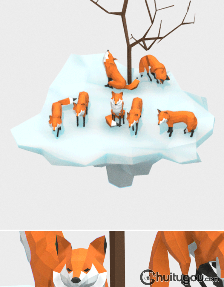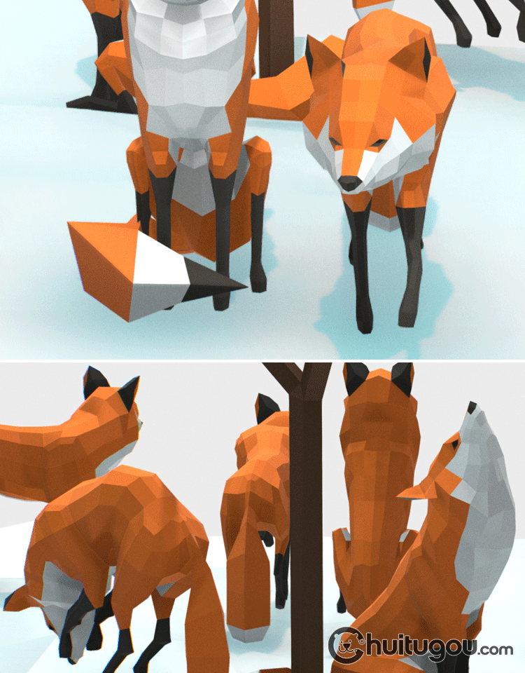 低面卡通狐狸模型C4D可爱小动物Blender建模FBX设计素材源文件OBJ