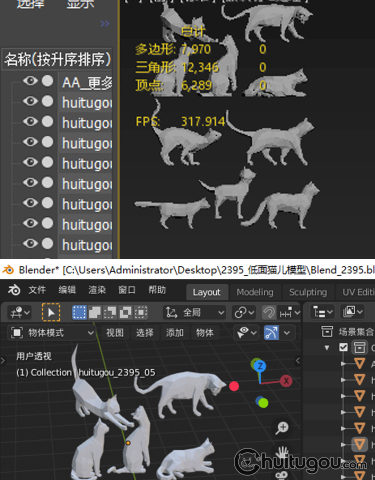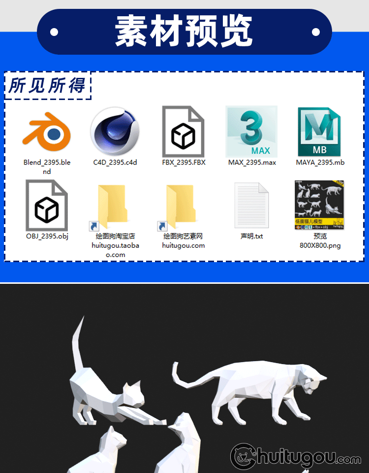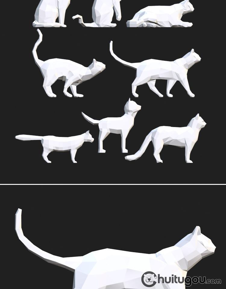 10只 低面小猫咪模型C4D卡通猫儿低模Blender基础网格MAX素材OBJ