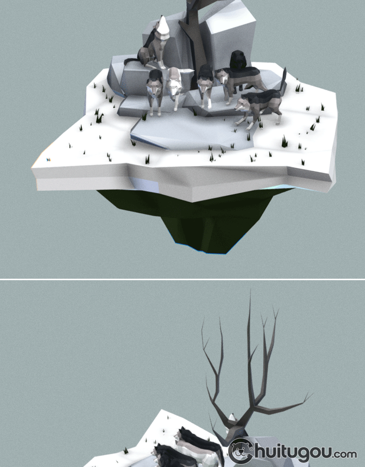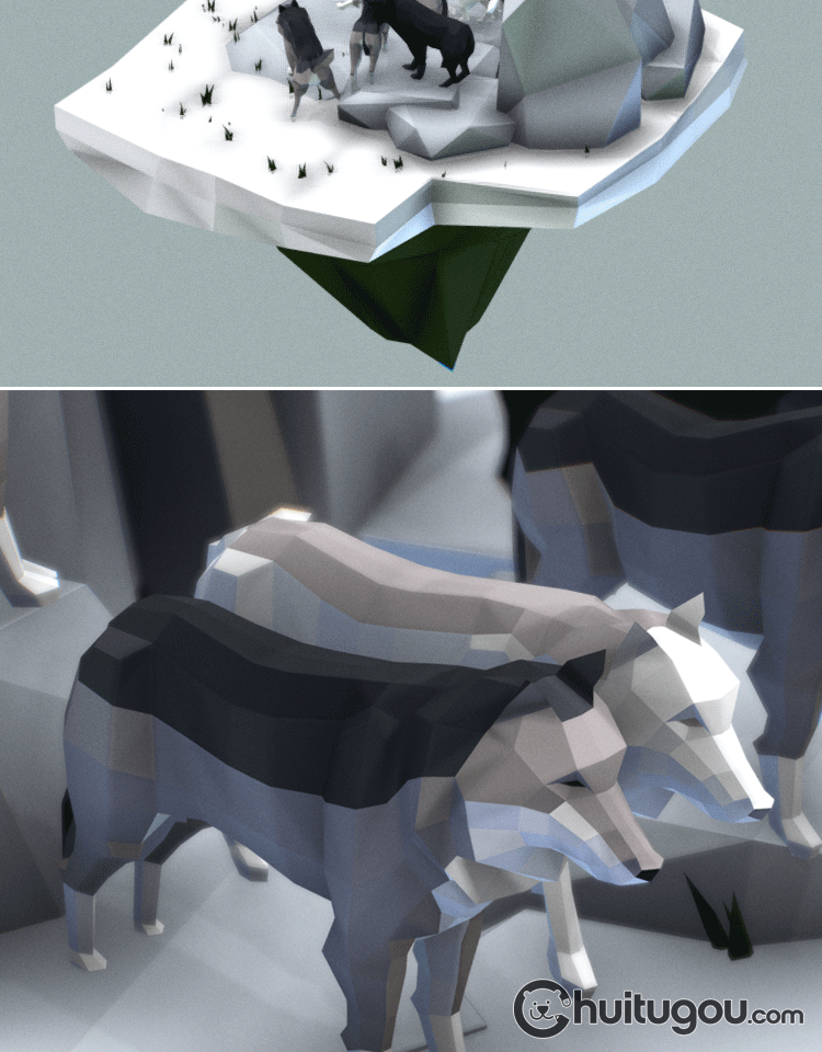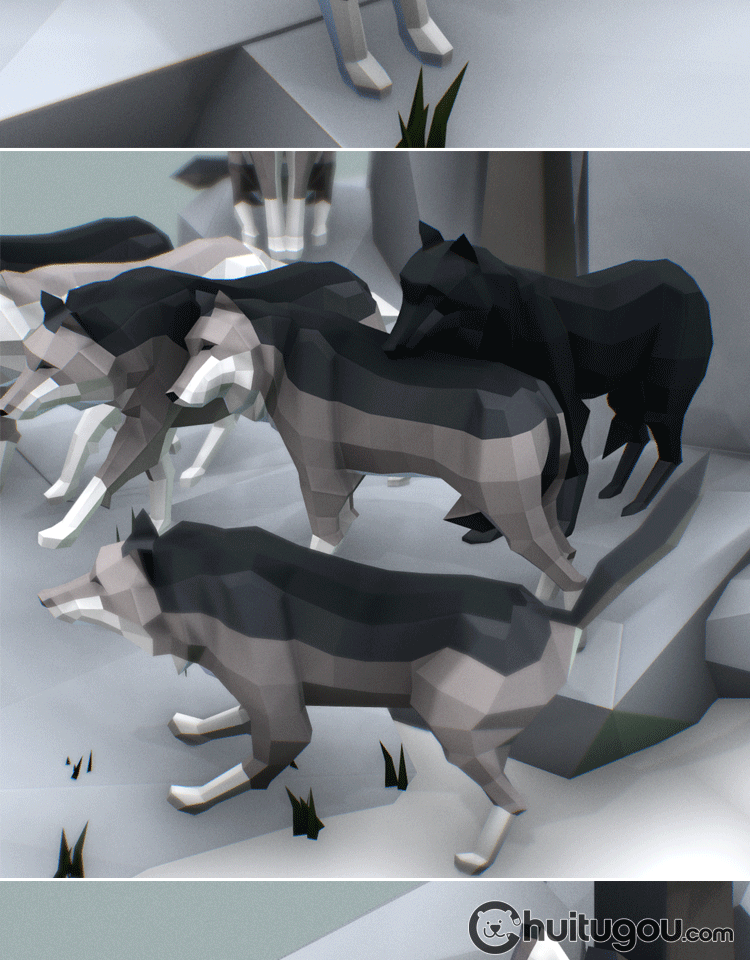 3D低面风格狼群模型Blender静态大灰狼C4D动物基础网格FBX格式OBJ
