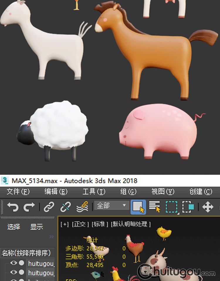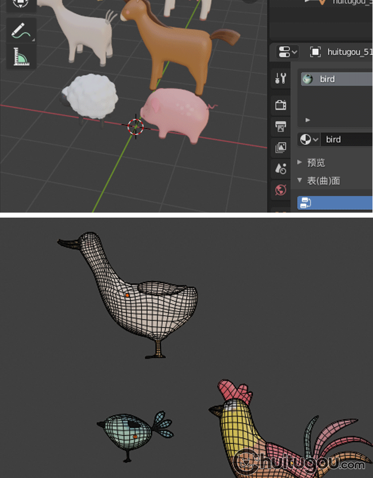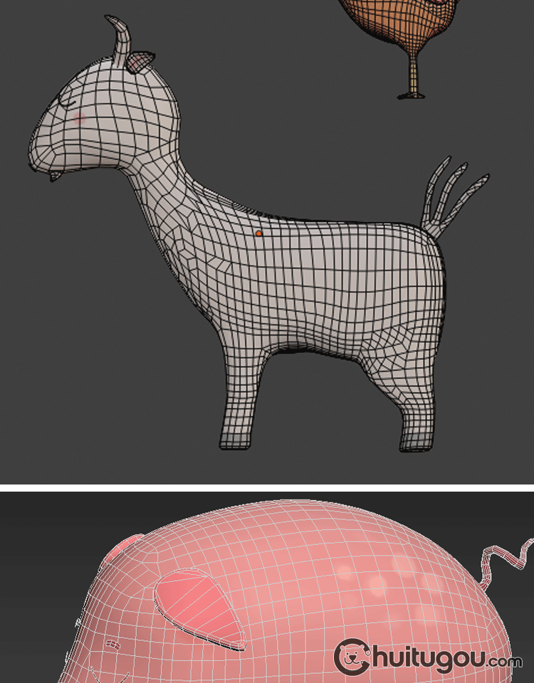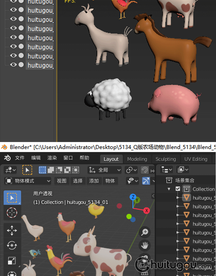 LOW POLY卡通农场动物Blend低面模型C4D羊小猪兔小鸡牛马FBX OBJ
