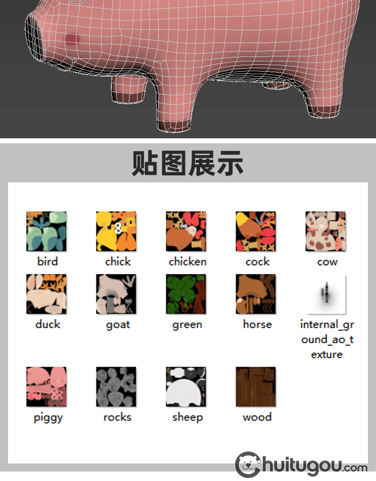 Q版农场动物MAYA卡通模型绵羊猪小鸡鸭马奶牛鸟C4D Blend FBX OBJ