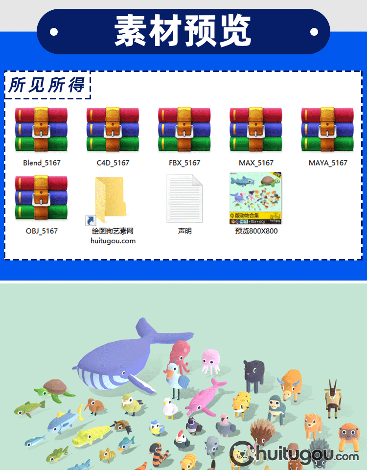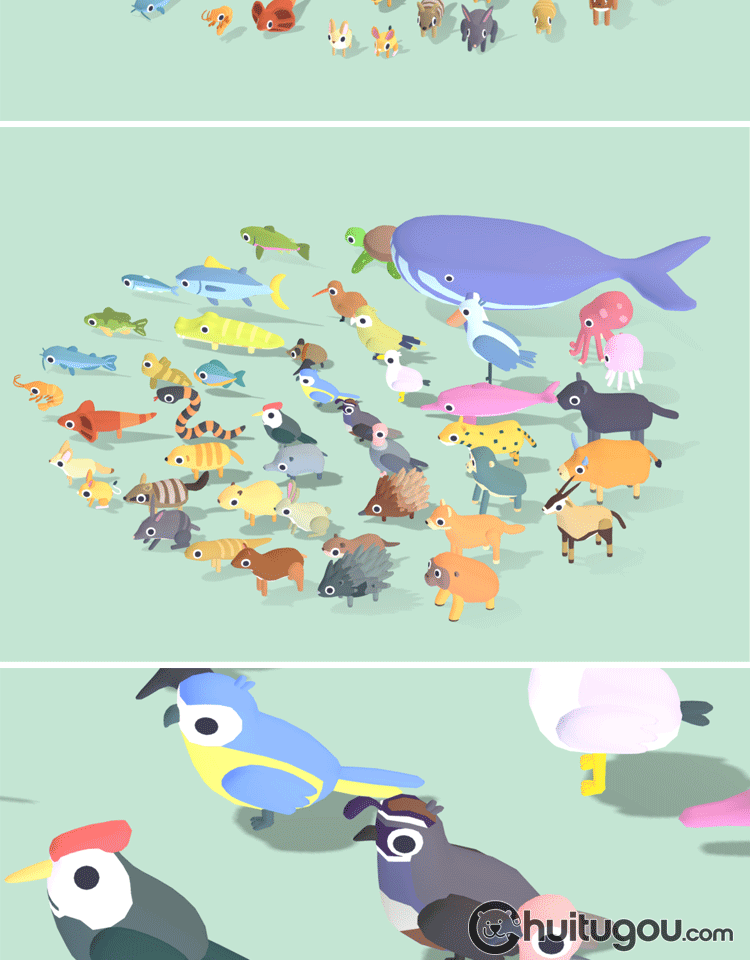 鱼类LOWPOLY卡通动物C4D模型Blend八爪鱼虾乌龟MAX小鸟蛇OBJ素材