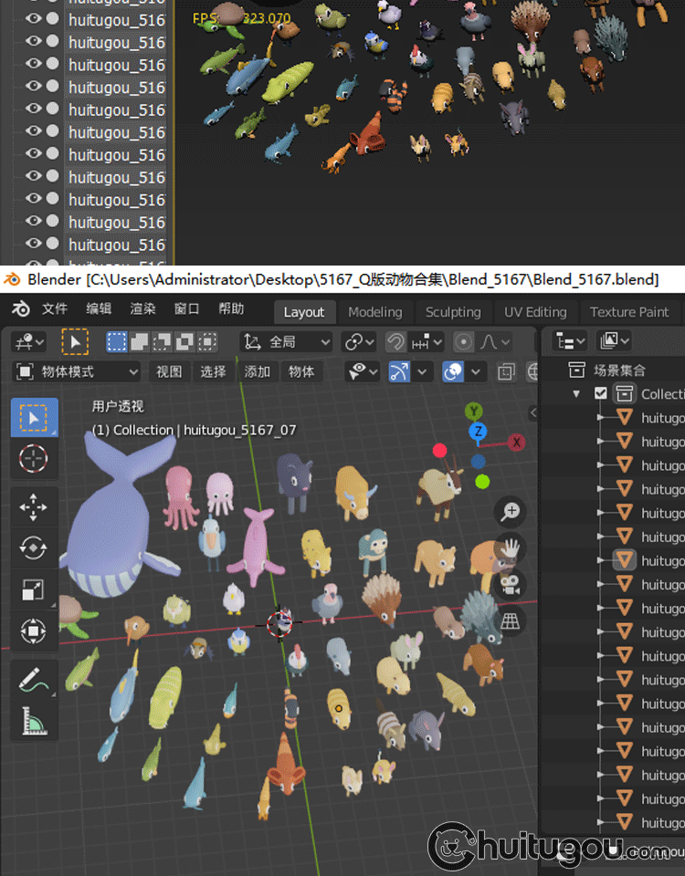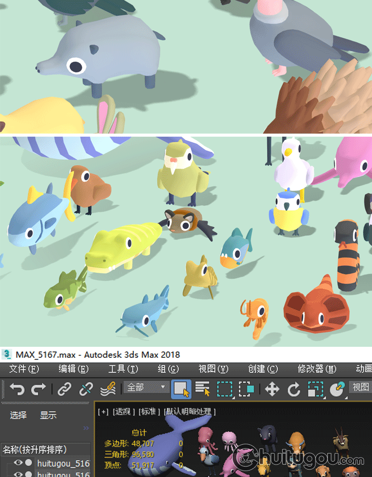 低面卡通溪流动物C4D模型Blender龙鱼鲤鱼翠鸟FBX鳄鱼青蛙乌龟OBJ
