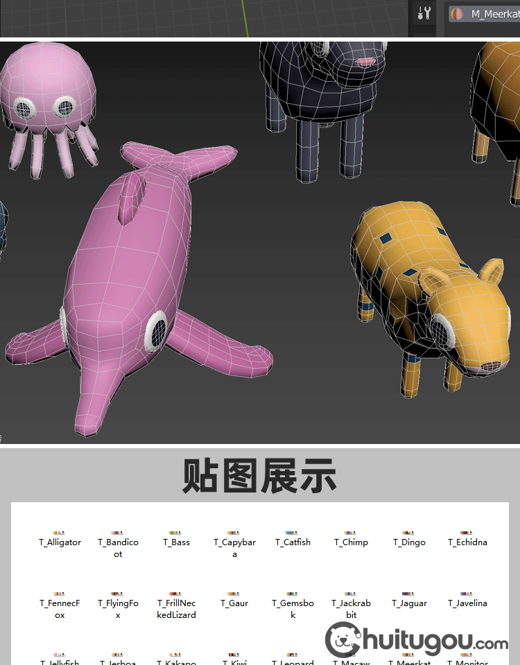 Q版低面动物包FBX鸟OBJ蝙蝠树懒斑马金鱼C4D袋鼠猪老虎3D模型素材