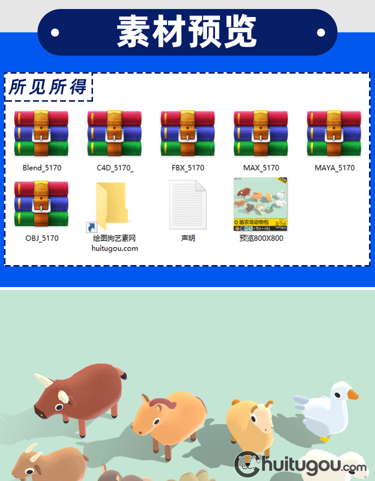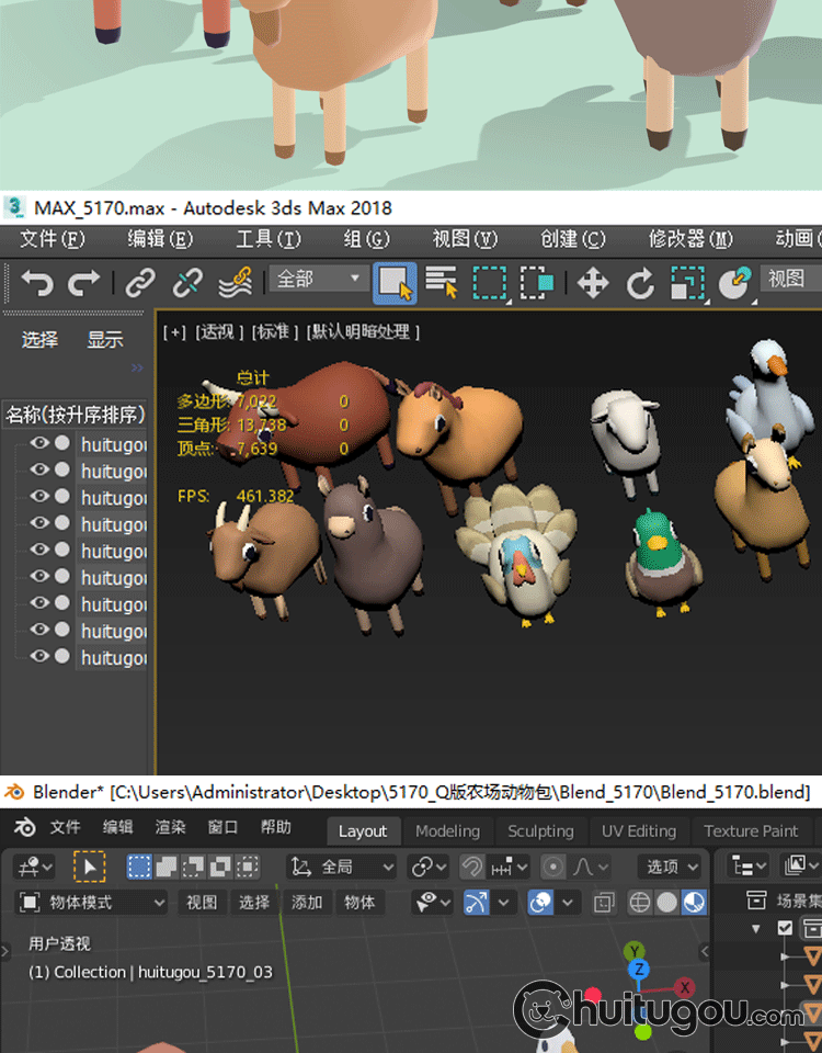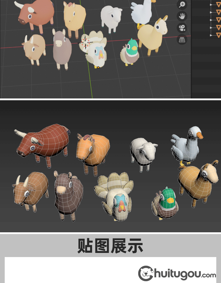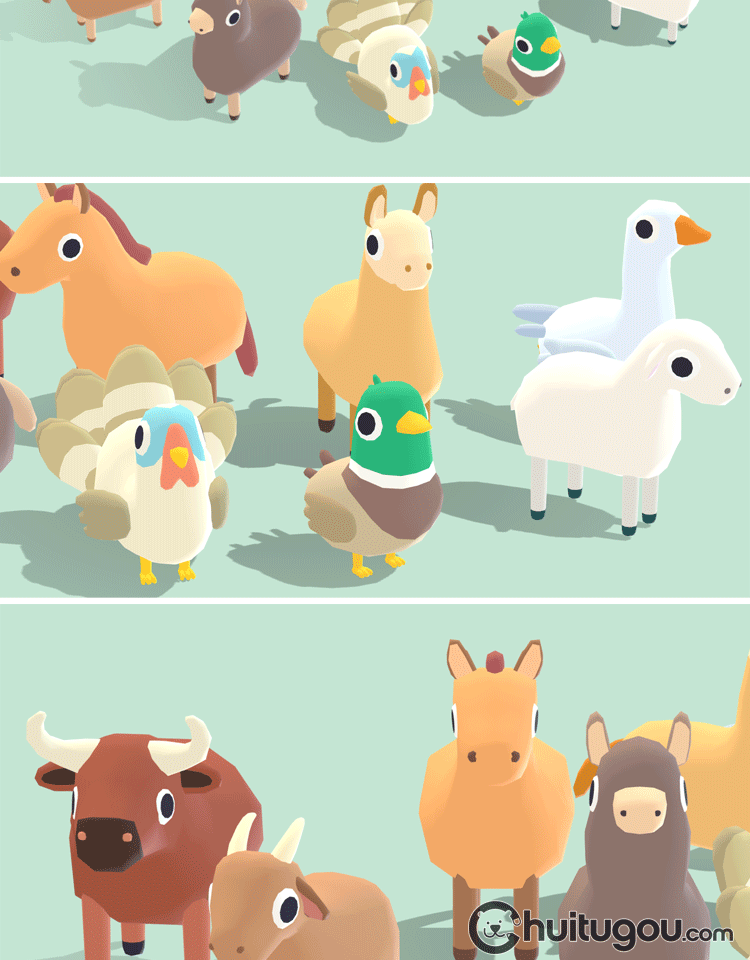 LOW POLY卡通农场动物Blend低面模型C4D羊小猪兔小鸡牛马FBX OBJ