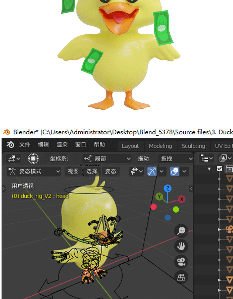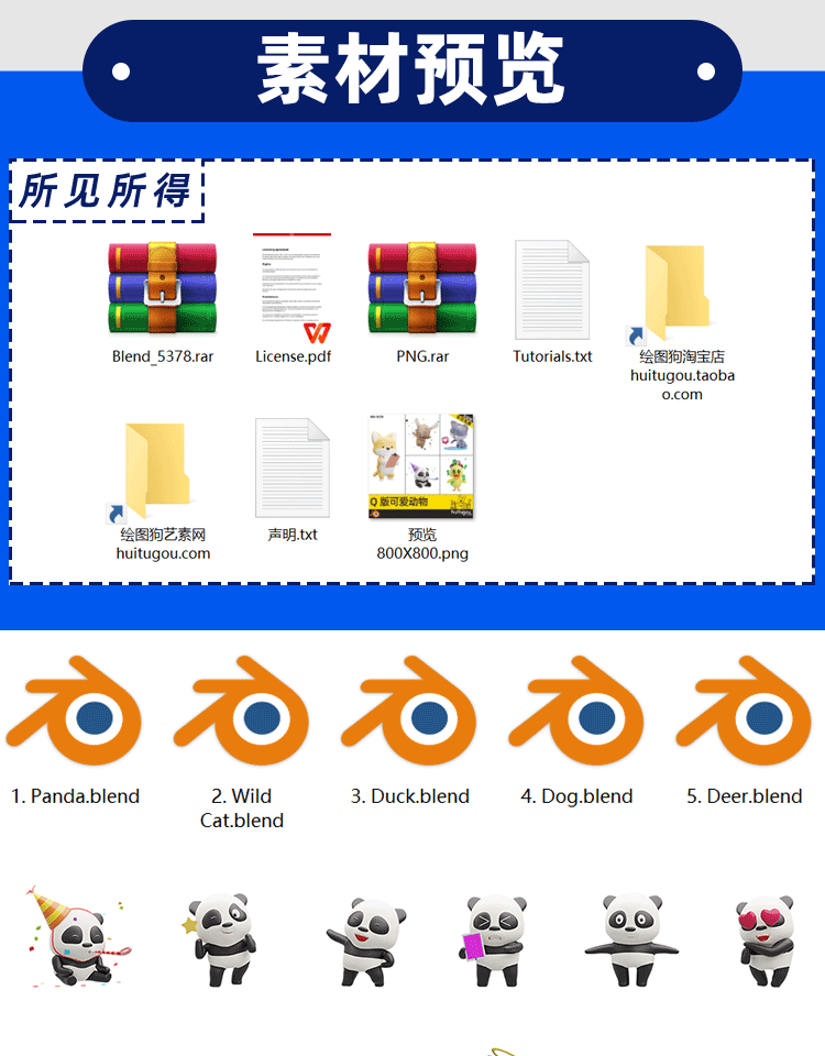 5款卡通可爱小动物萌宠Blender带骨骼熊猫小鸭小羊3D素材附PNG图