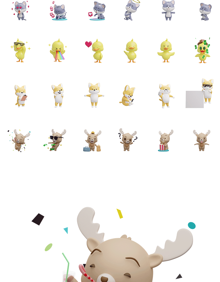 C4D卡通可爱动物玩具3D模型Blender小鸭子小狐狸MAYA建模FBX素材
