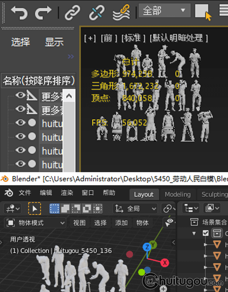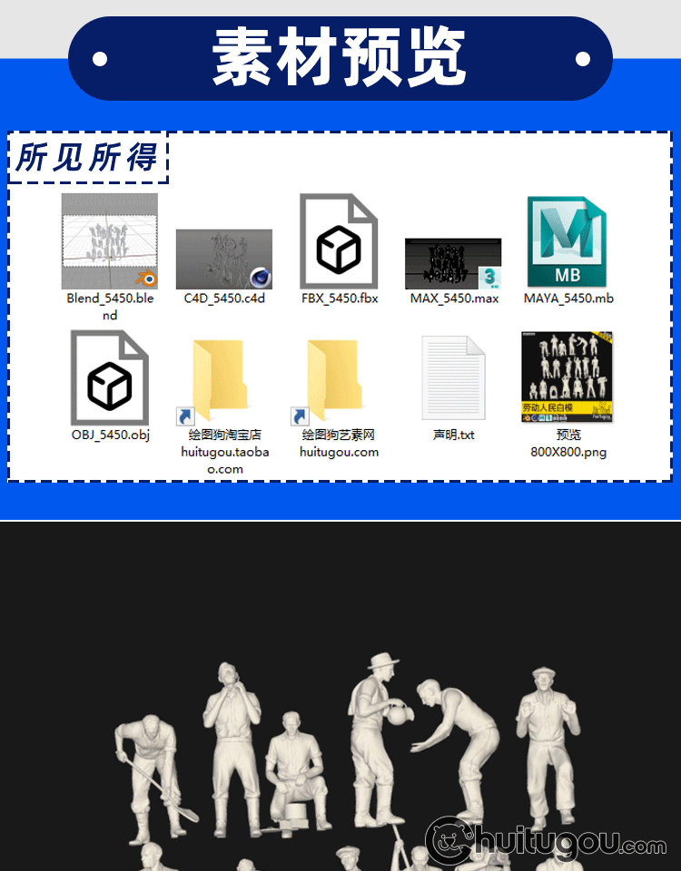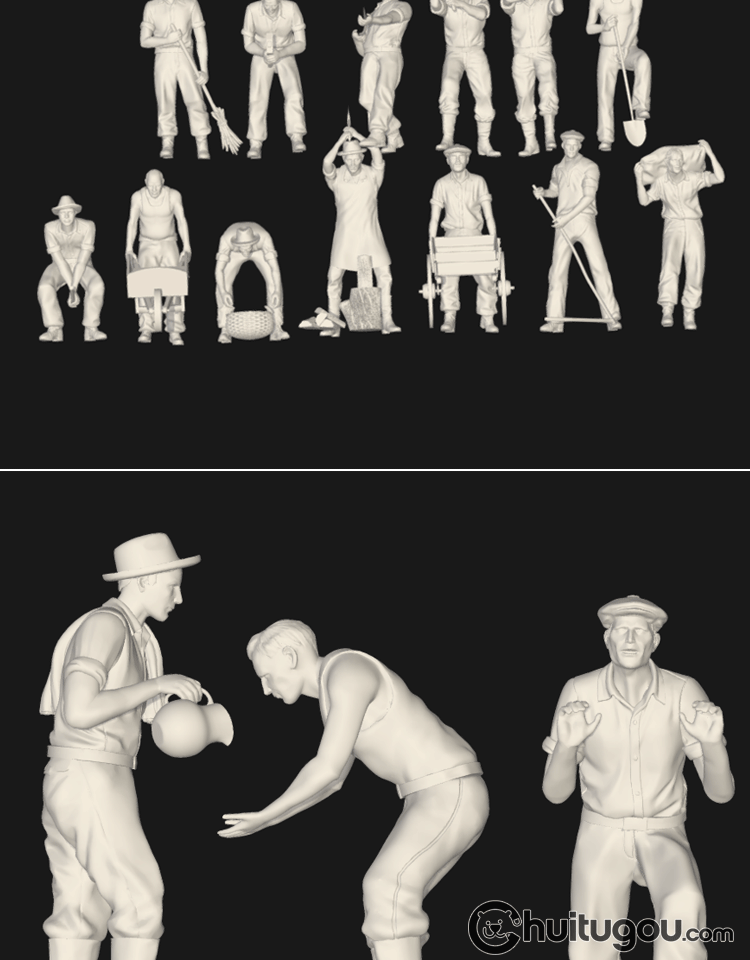 C4D劳动人民白模Blender人物角色中模 劳动青年雕刻建模3D素材OBJ