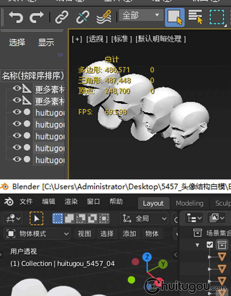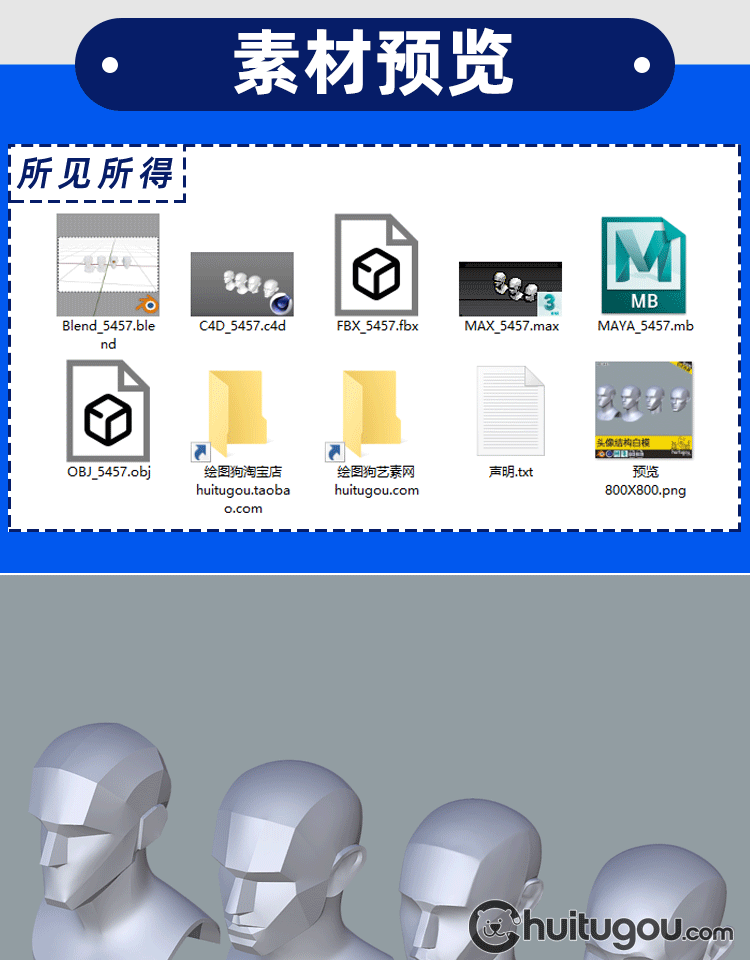 C4D人物头像结构Blender人头3D模型 美术人体参考灯光练习OBJ素材