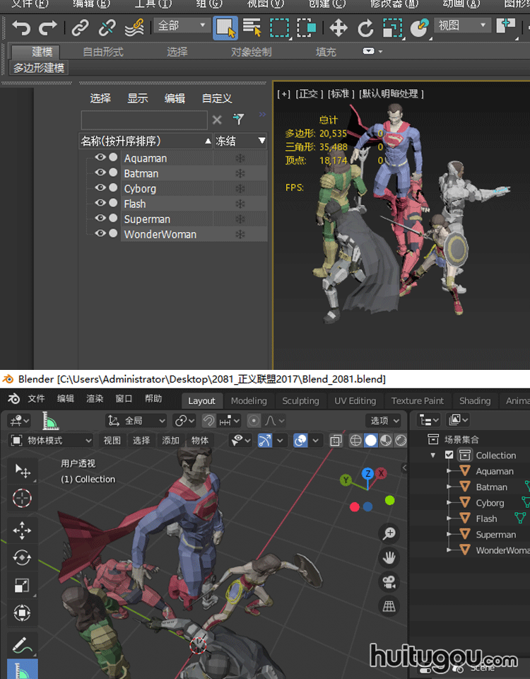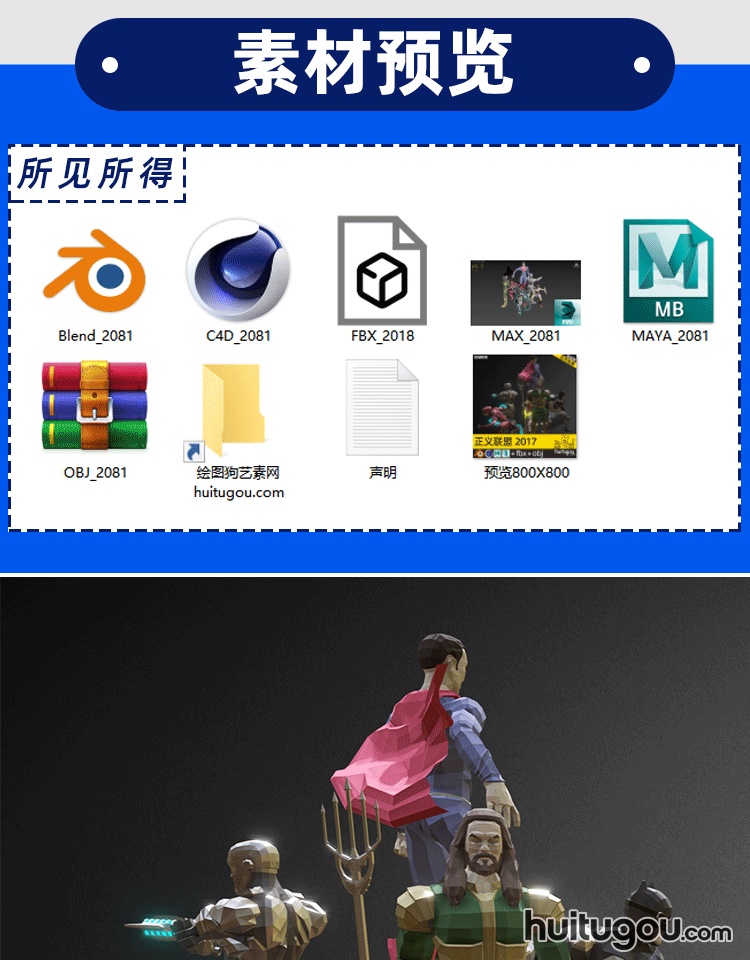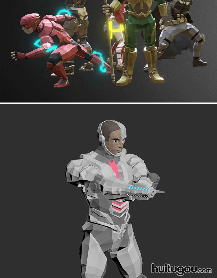 低面正义联盟角色英雄怪兽blender动漫C4D模型素材FBX mb OBJ格式