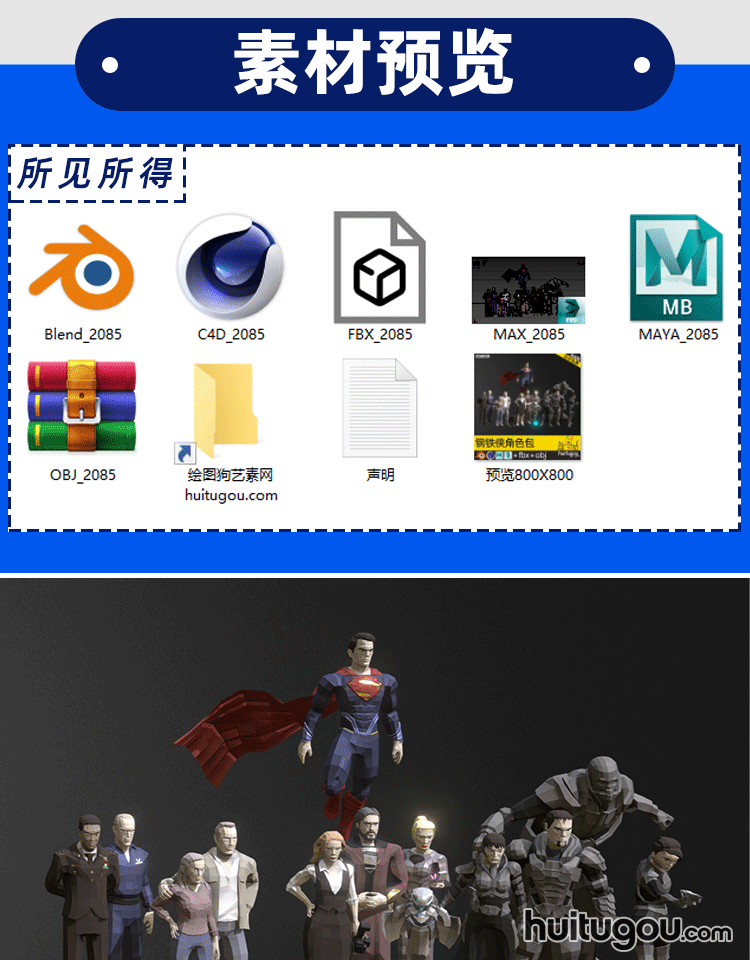 钢铁侠大战超人Batman Superman模型C4D Blend mb OBJ max 3D素材