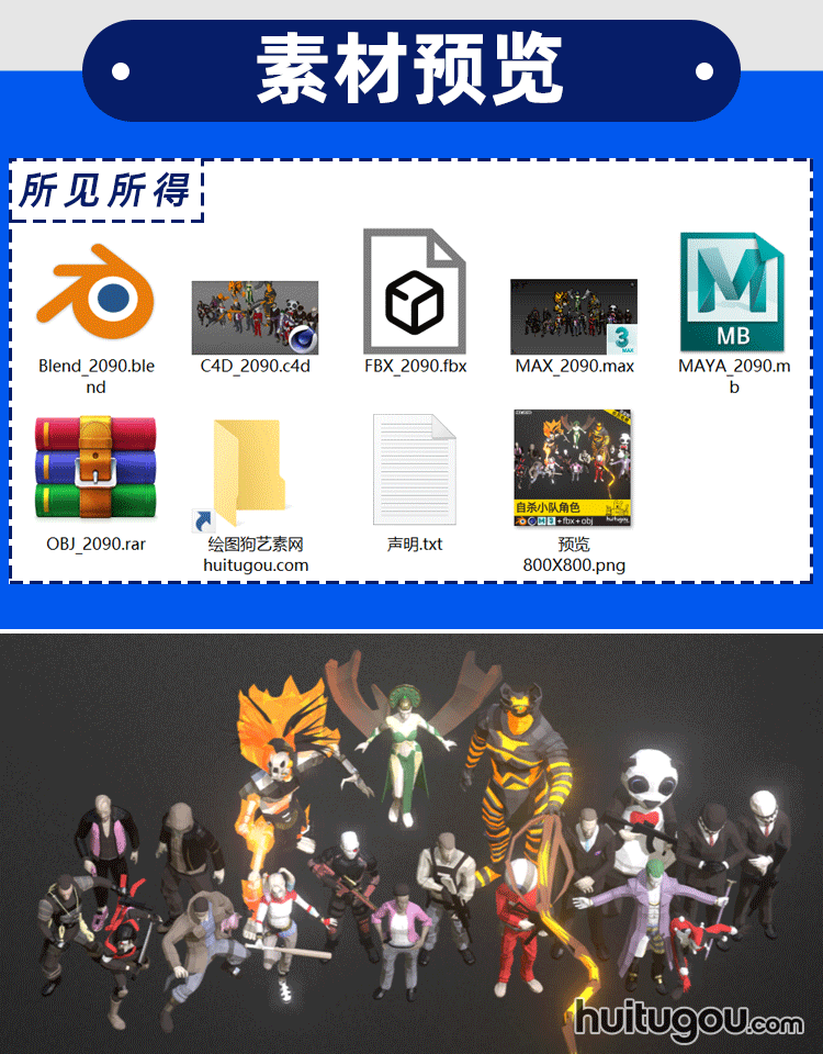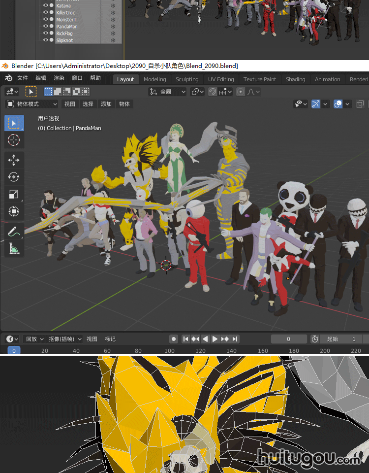 自杀小队人物C4D角色blender小丑杰克max小丑女maya熊猫人fbx obj
