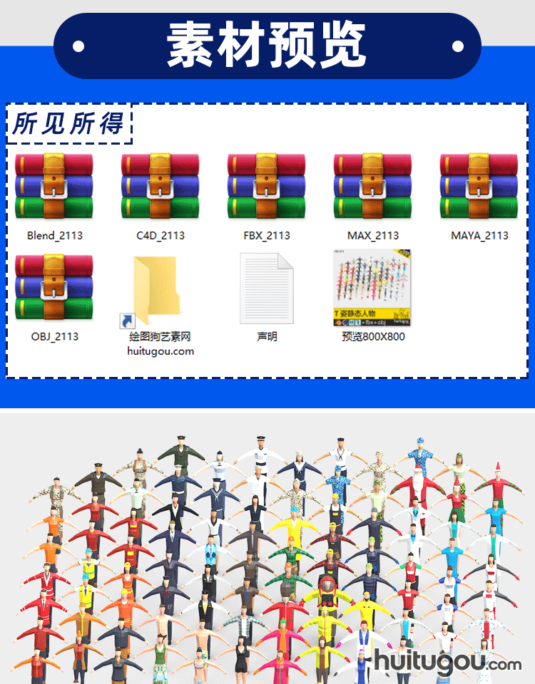 T姿春夏秋冬休闲人物包C4D海陆空军Blend科学家运动员警察OBJ FBX