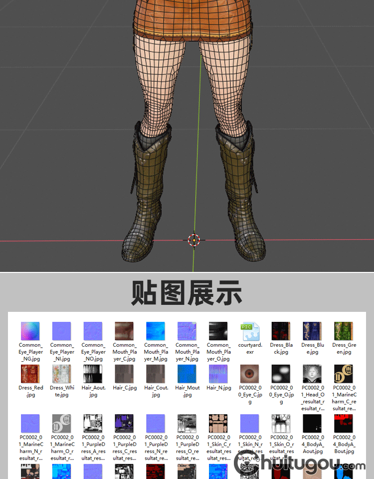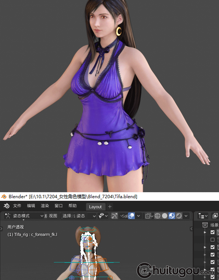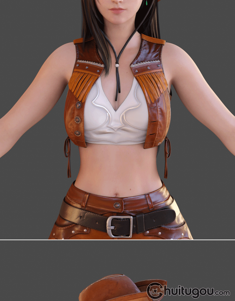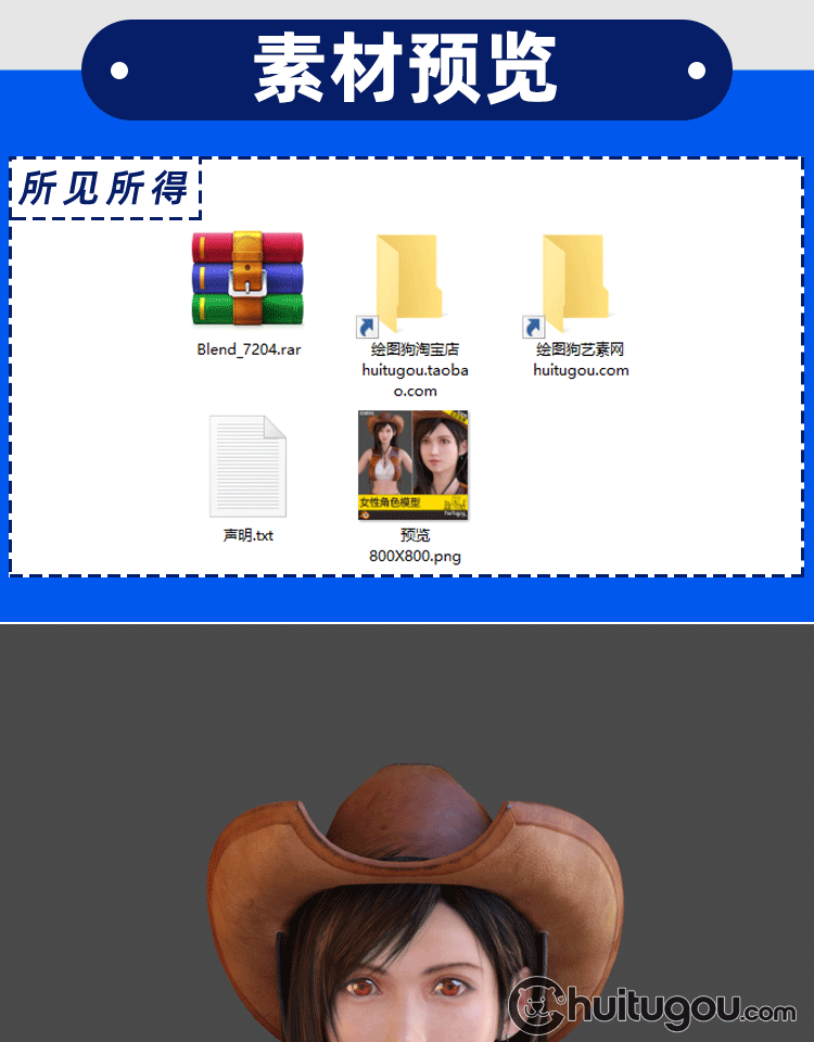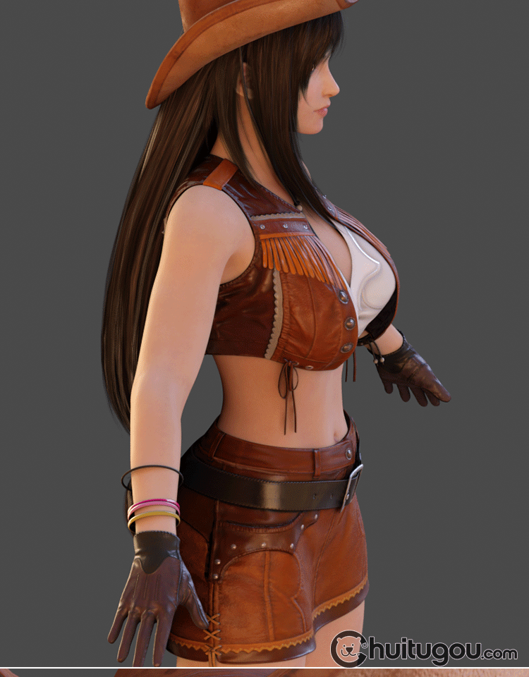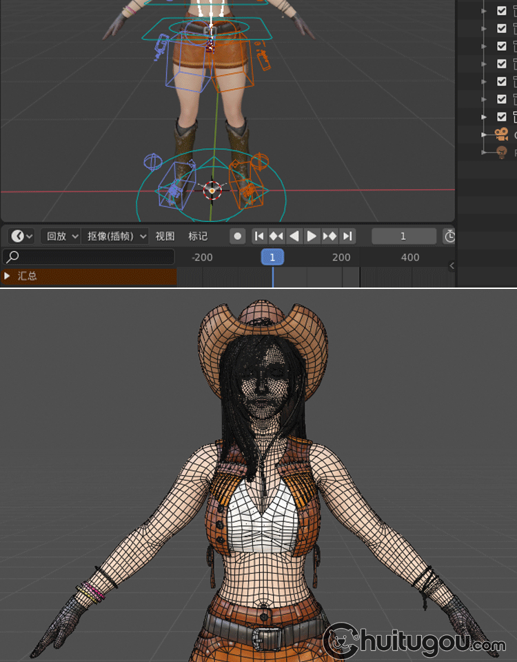 Blender次世代动漫牛仔美女3D人物角色PBR模型带骨骼绑定CG素材