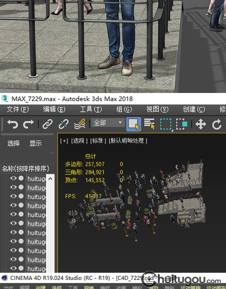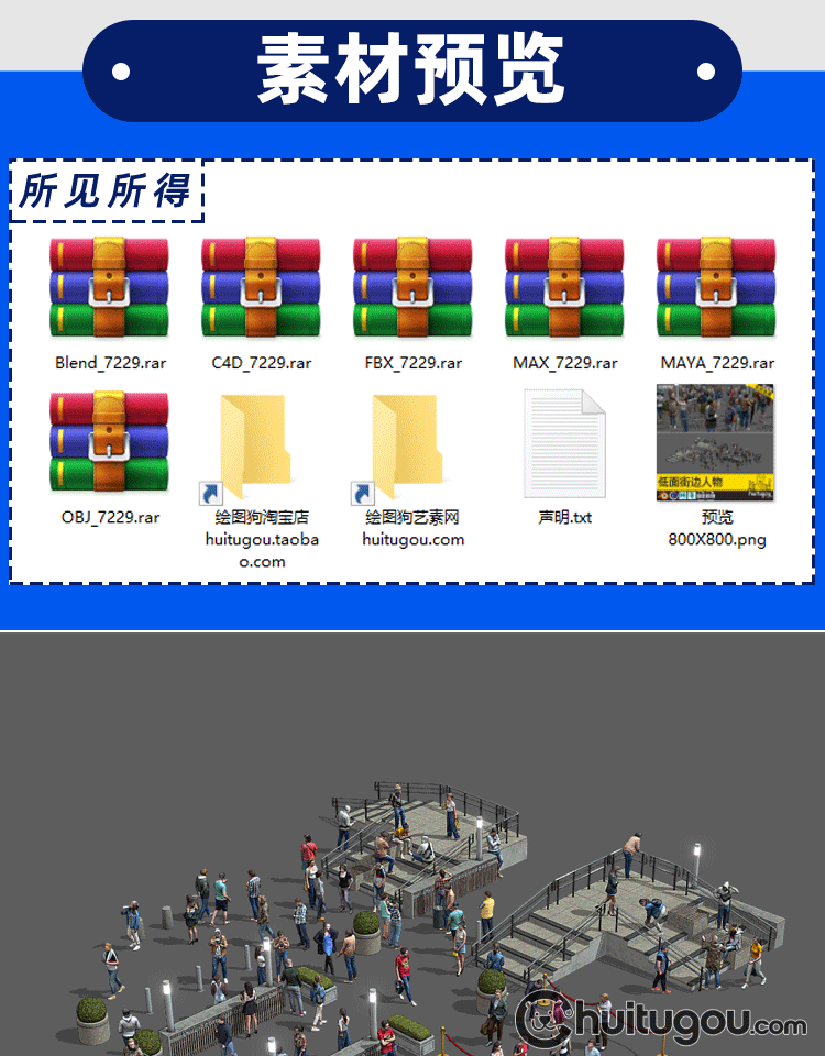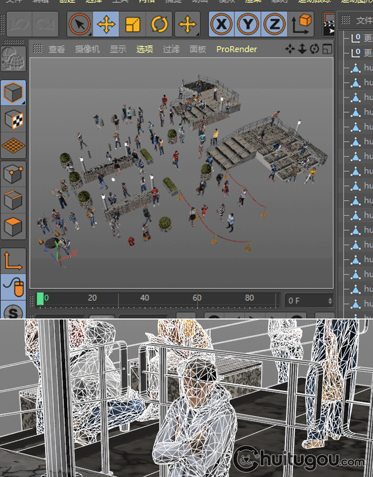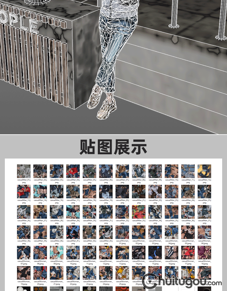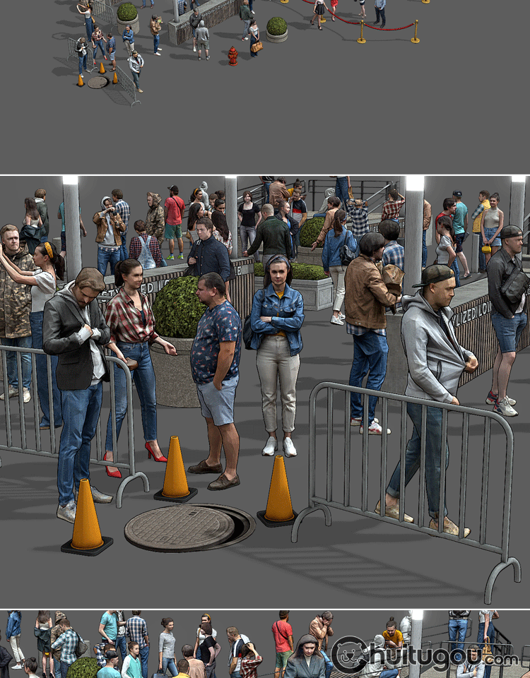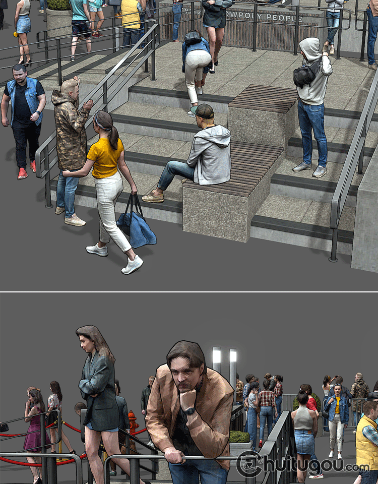 C4D低面街头人物模型MAX站立坐立行走社交姿态静态角色3D渲染素材