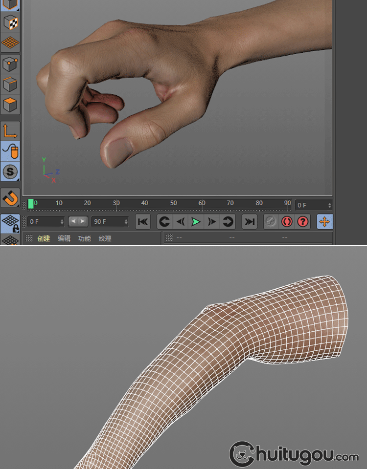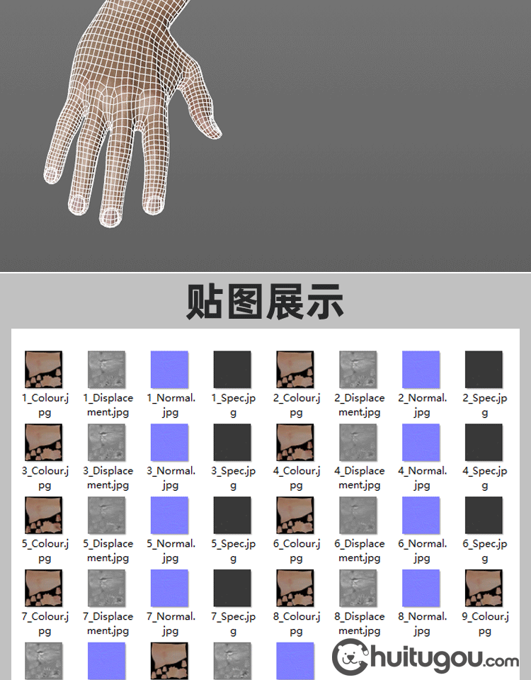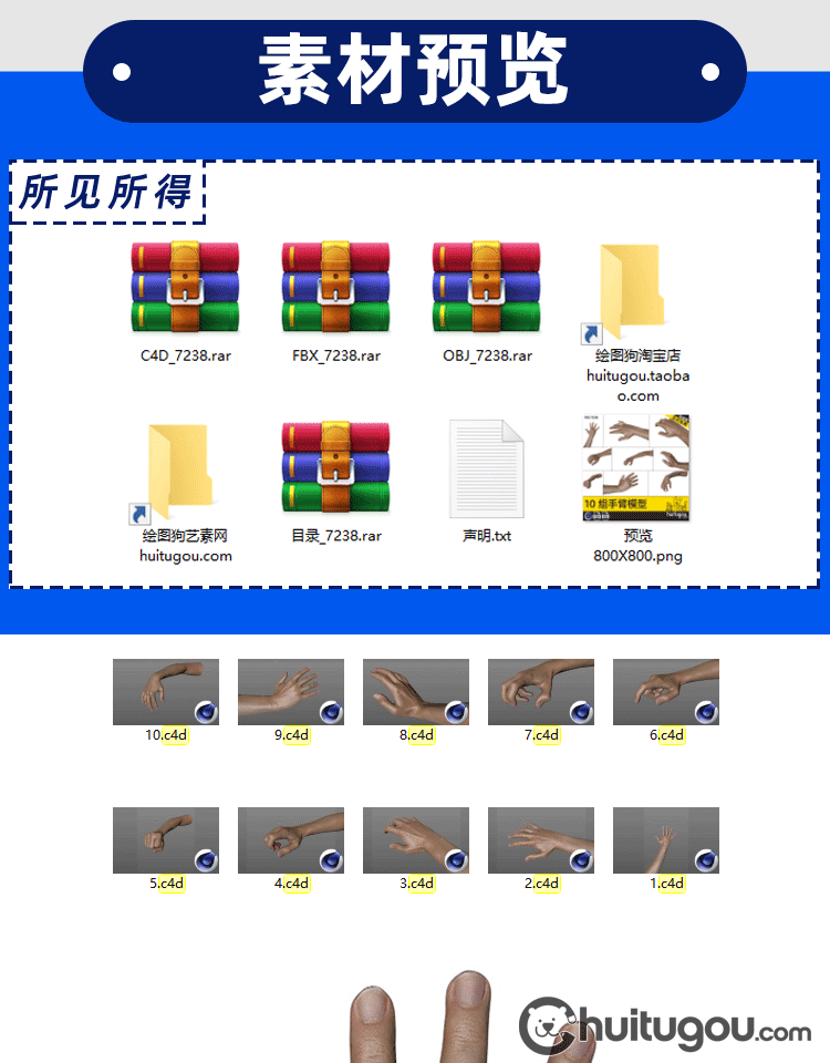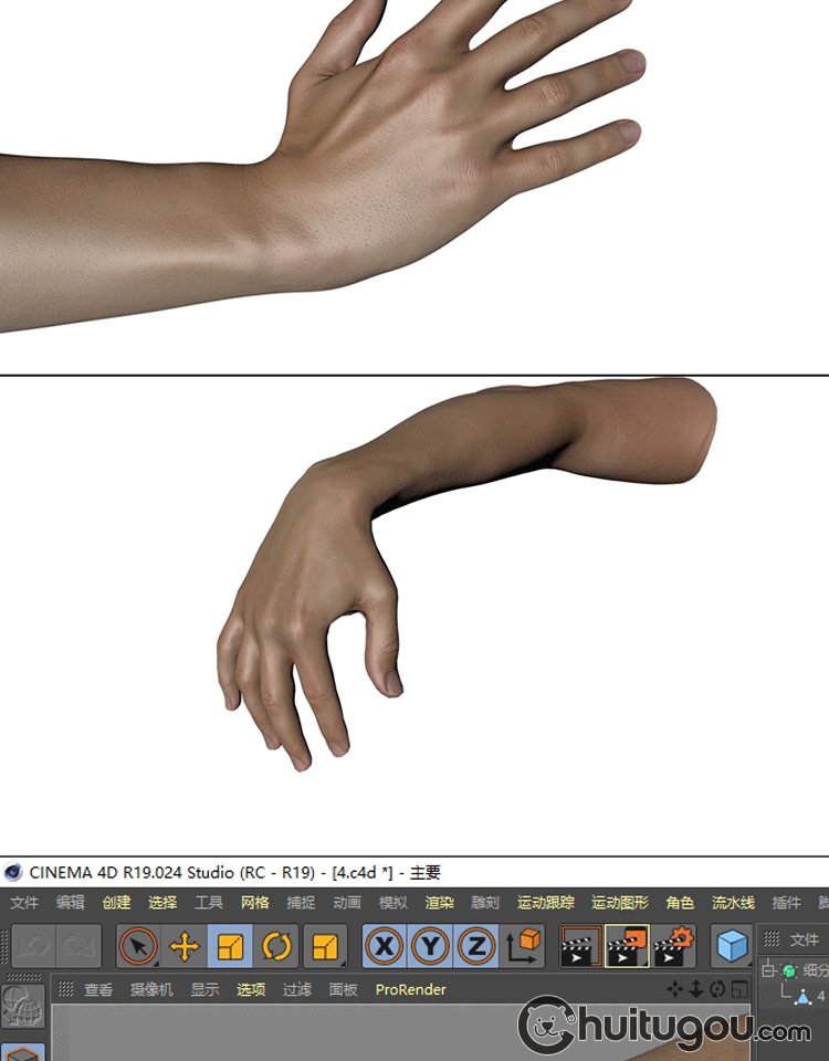 C4D写实PBR手臂单体模型FBX手部手指手掌OBJ建模渲染设计3D素材