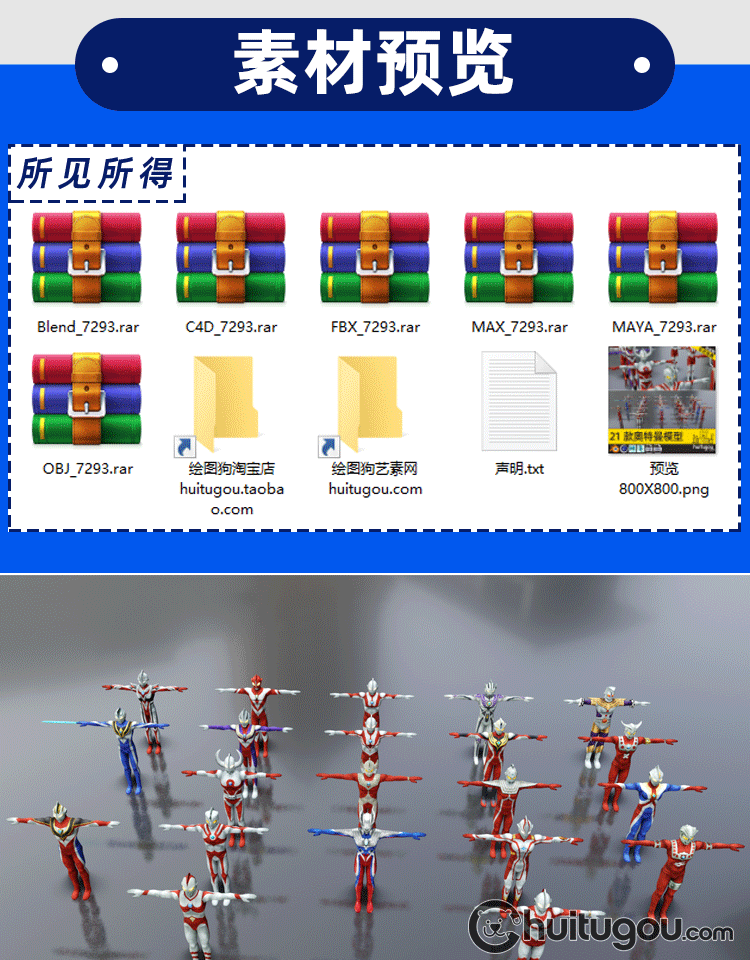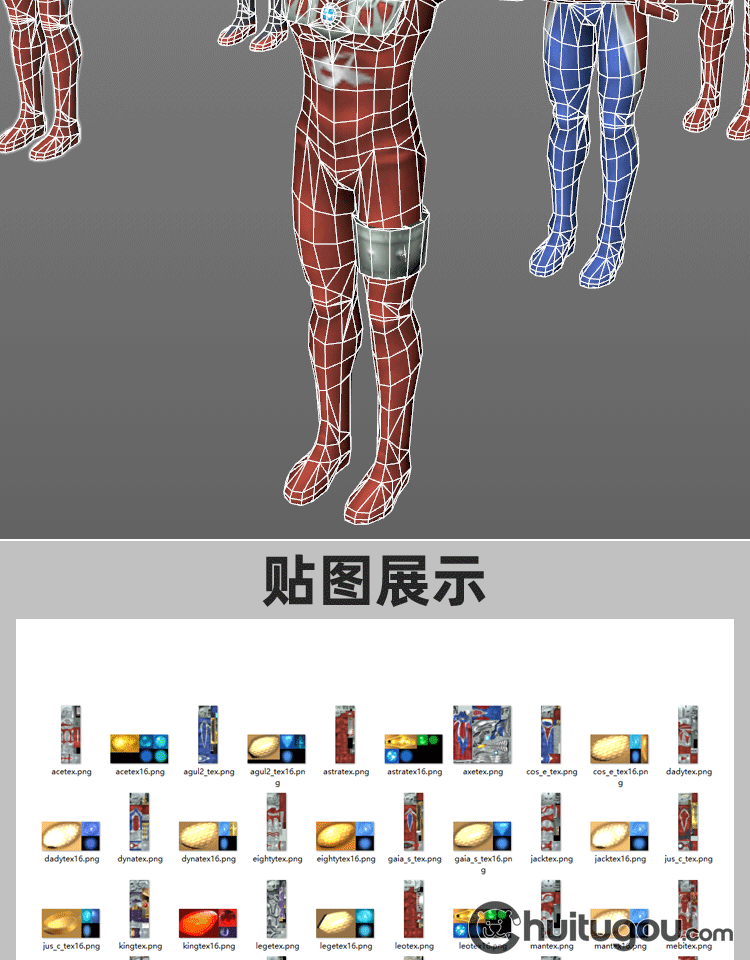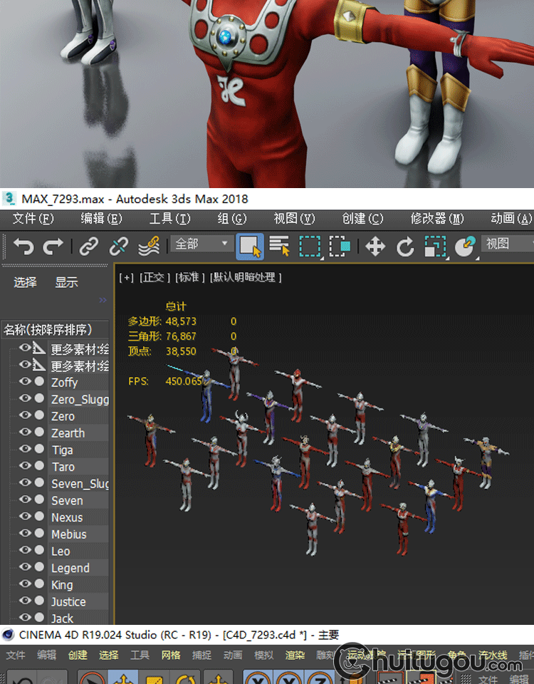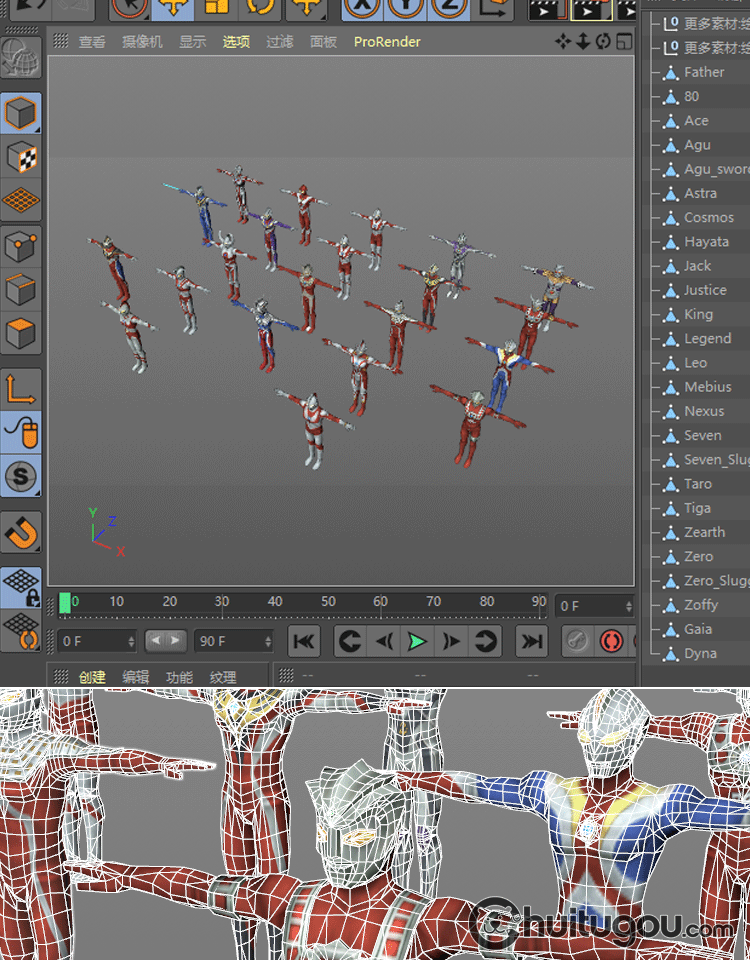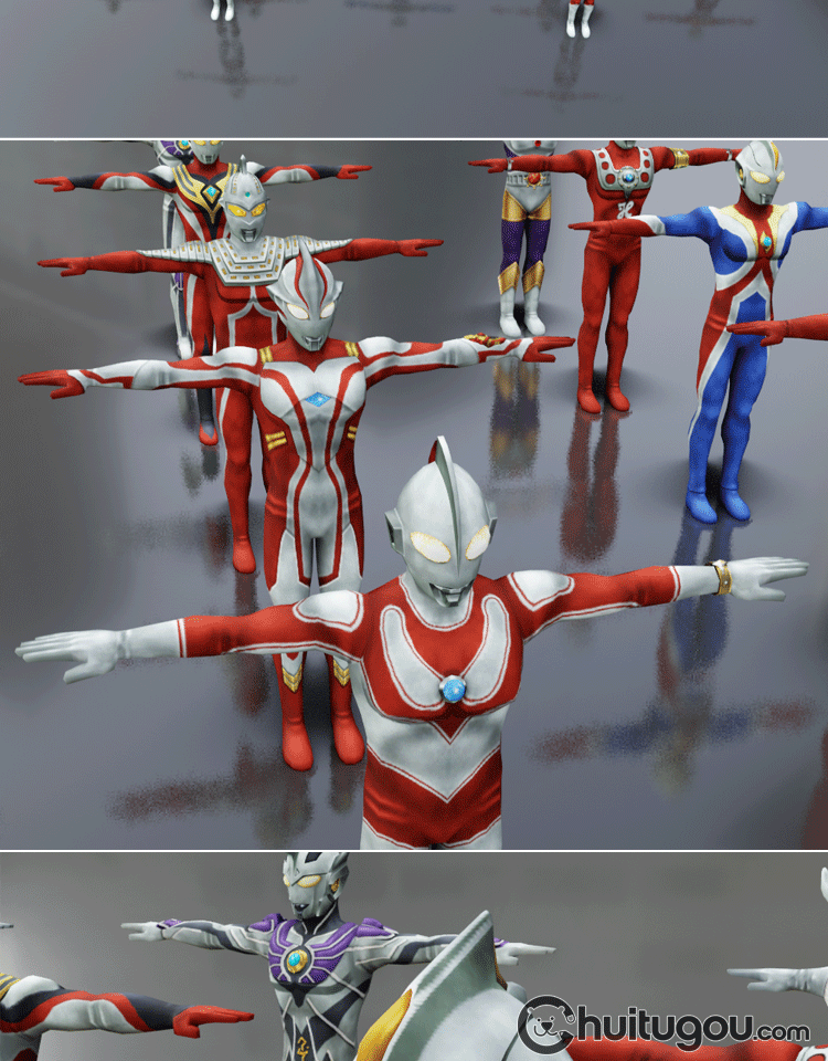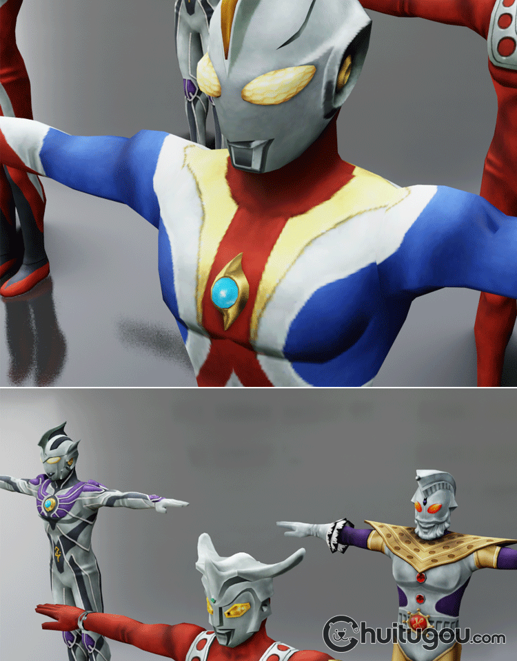 C4D奥特曼T姿势低面模型MAYA动漫卡通人物角色FBX建模设计3D素材