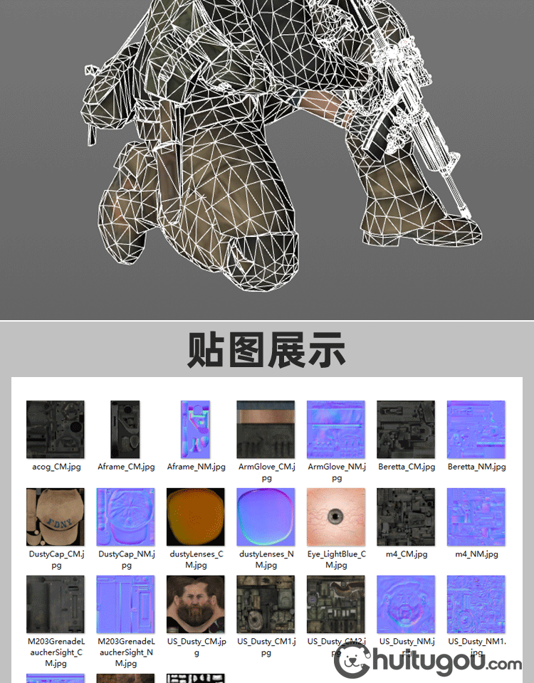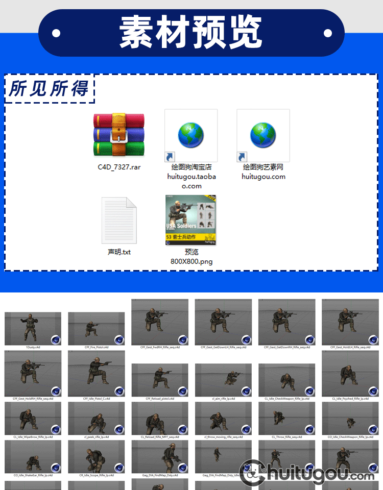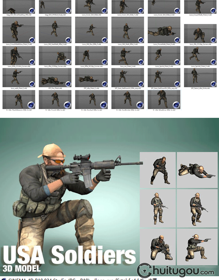 C4d士兵军人战士人物3D模型 游戏影视角色带动作动画绑定CG素材
