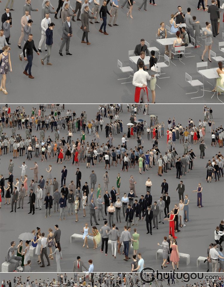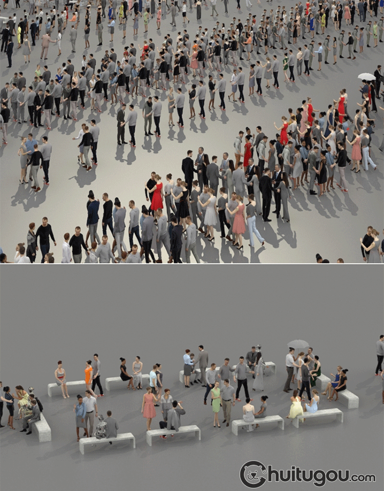C4D低面人群人物MAX社交姿势角色办公室坐姿白领商场街道FBX模型