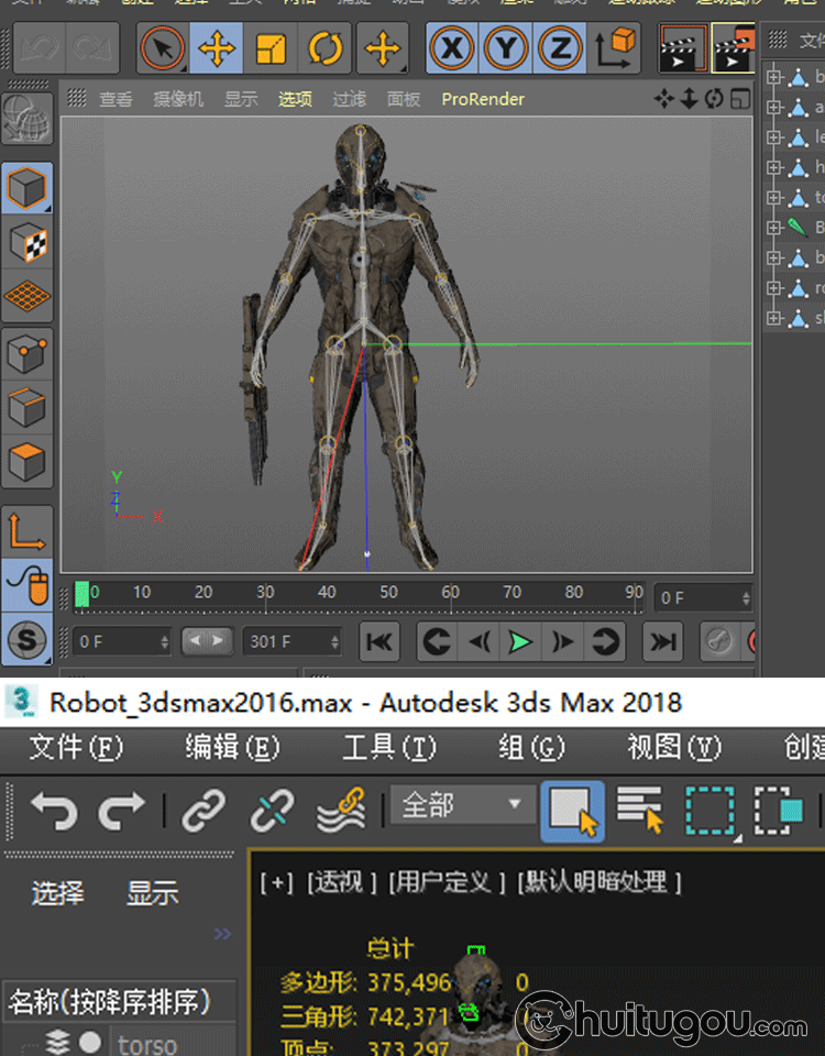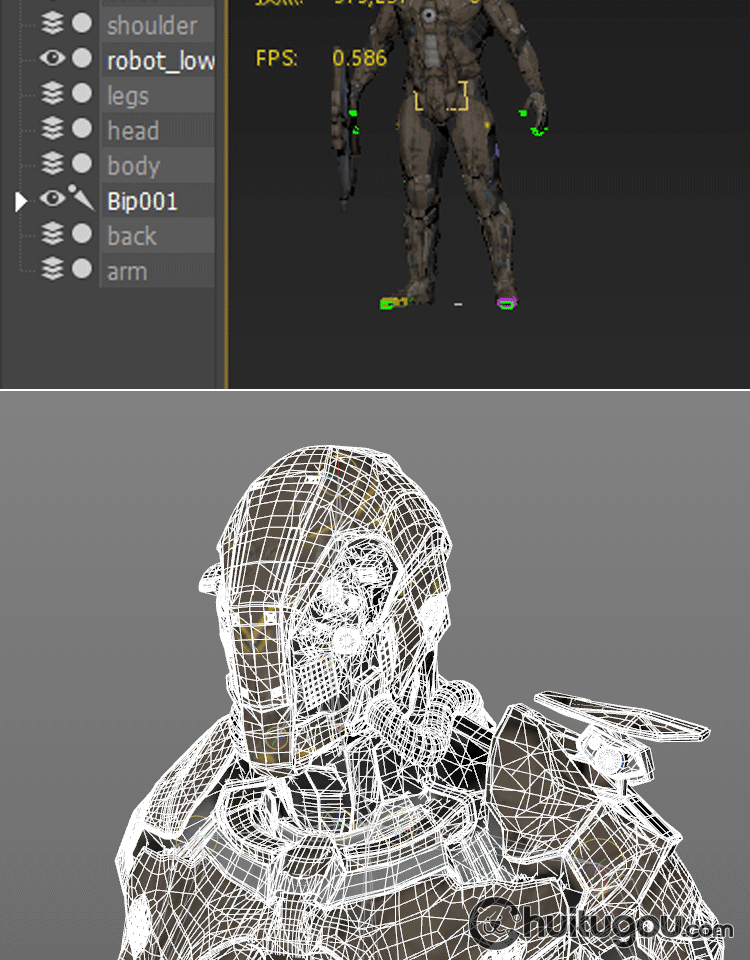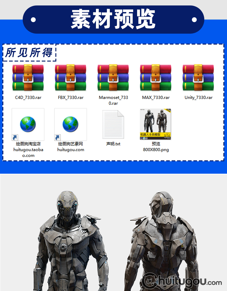 C4D科幻机械机器人战甲战士兵MAX格式FBX 绑定骨骼动画设计3D模型