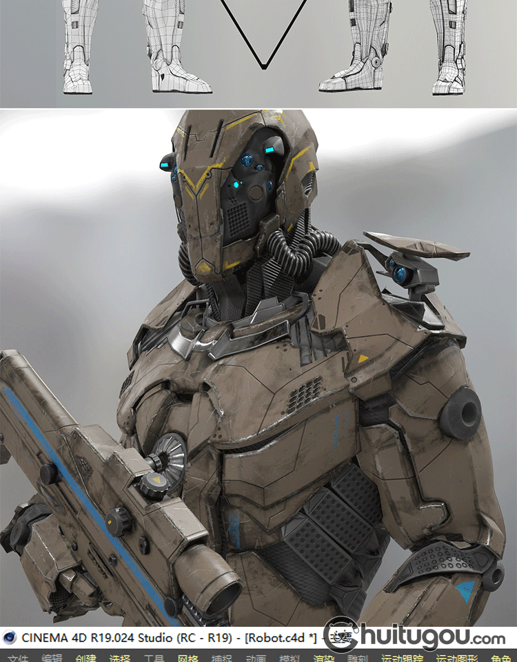 科幻机甲战士C4D战斗机器人FBX战争机械OBJ硬表面3D建模设计素材
