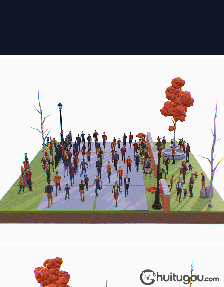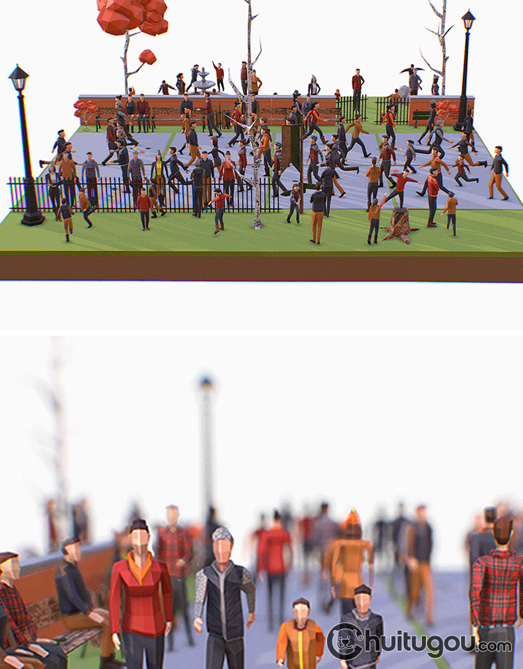 秋季Q版人物包Blend公园戏耍人群小孩男女角色C4D低面风格FBX OBJ