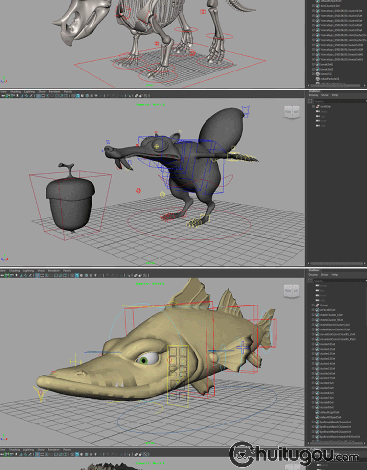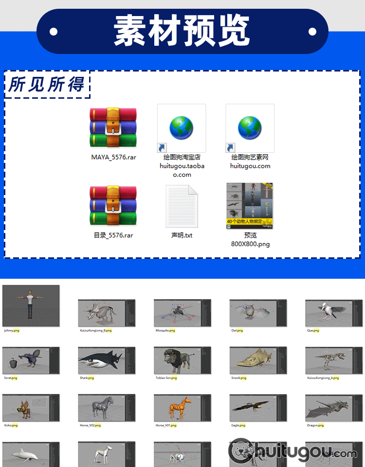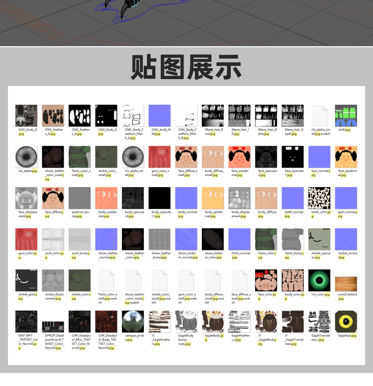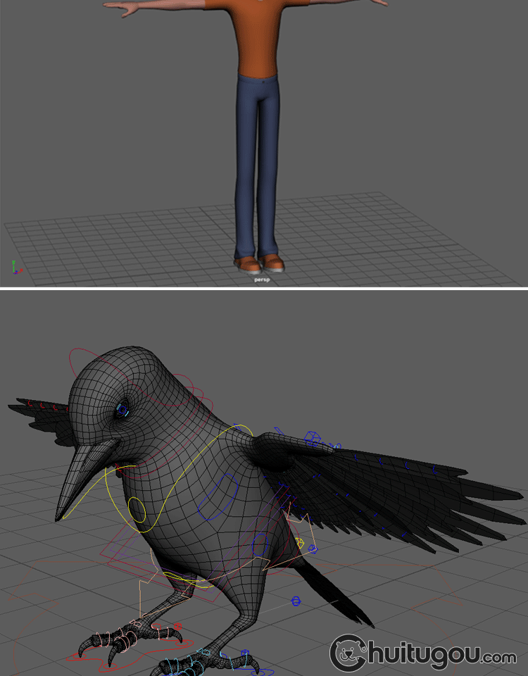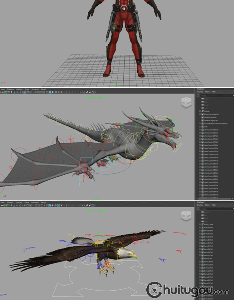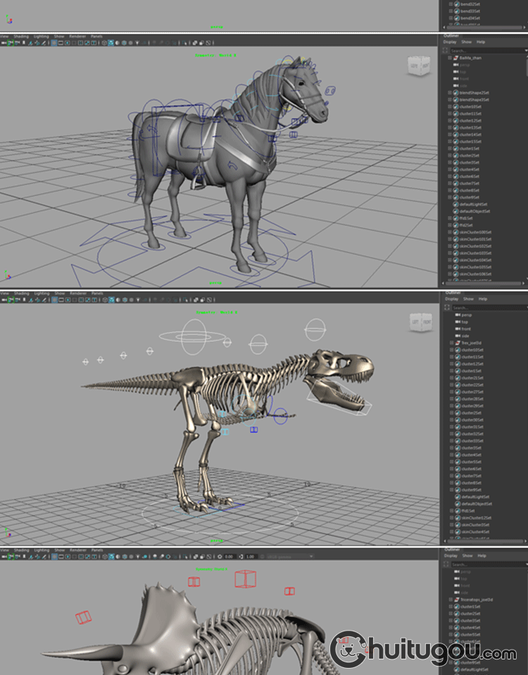 MAYA人物动物怪兽模型带骨骼绑定 CG动画素材 建模渲染mb源文件