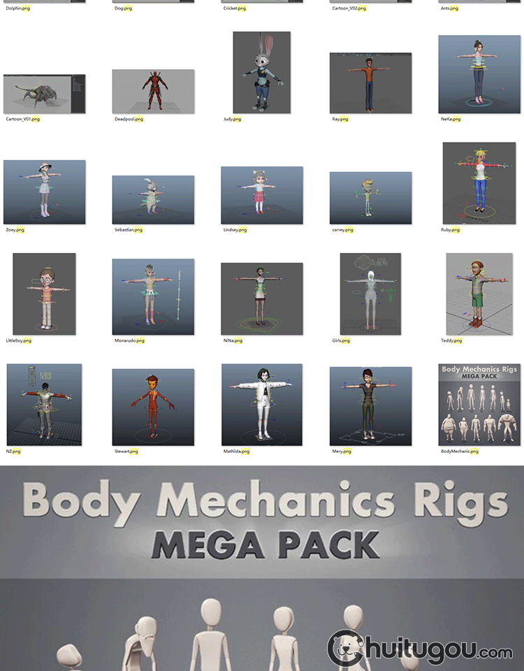 MAYA卡通男女人物角色动物机甲道具3D模型带骨骼绑定 CG资源素材