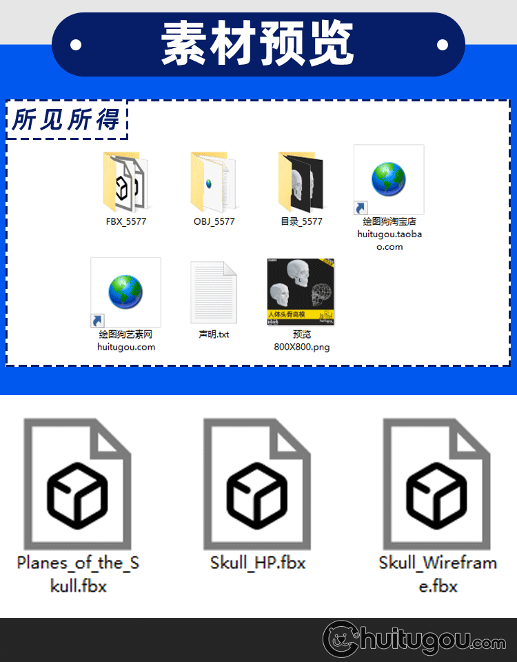 人物头颅头骨骷髅3D模型FBX格式OBJ白模 高模 低模ZBrush建模雕刻