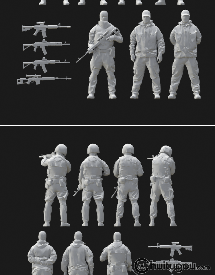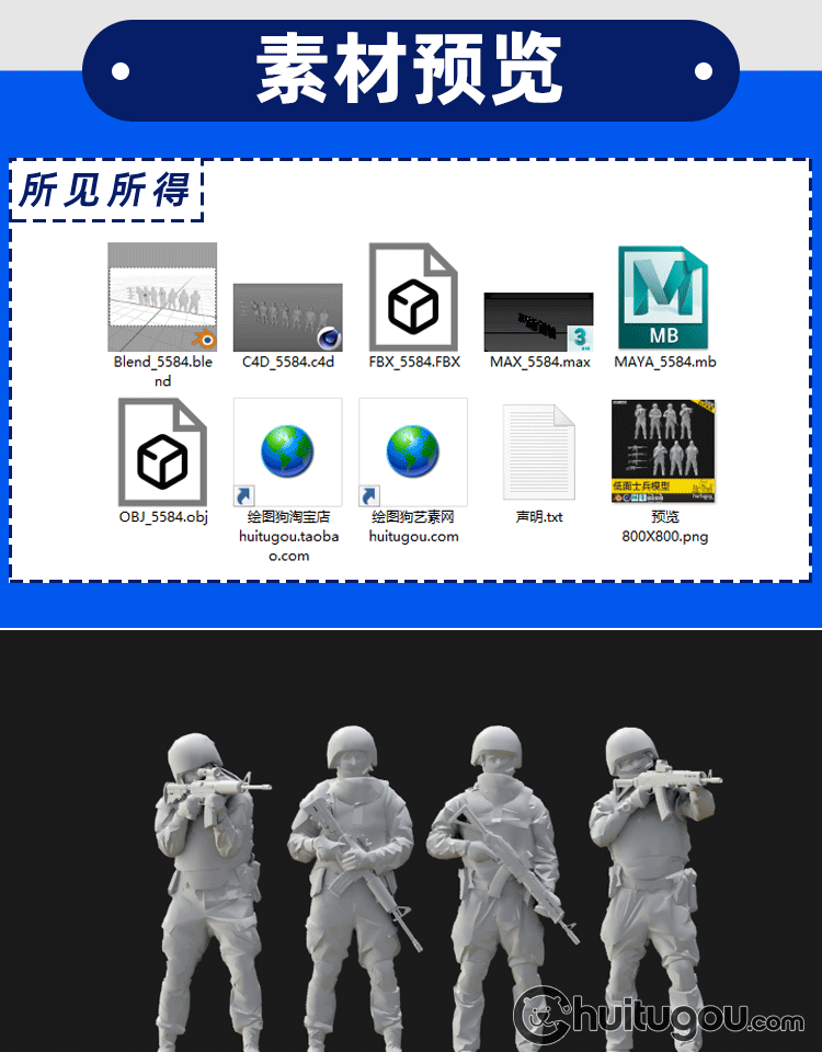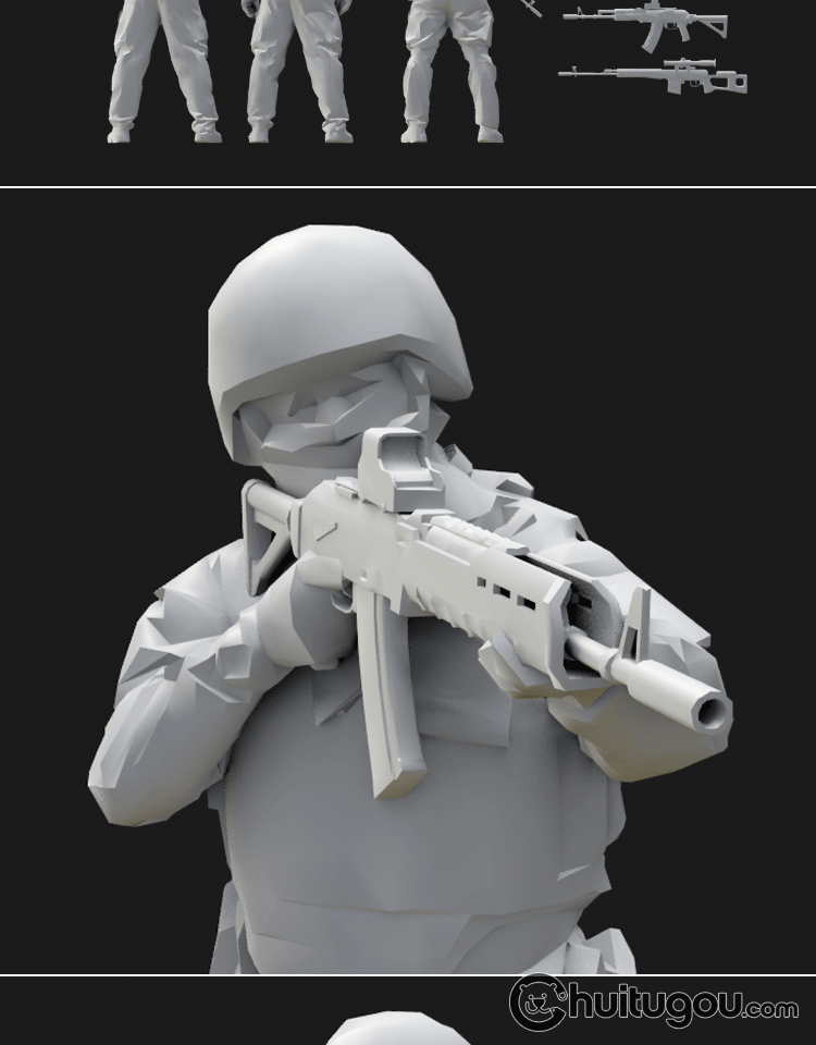 MAX低面静态人物军人士兵3D模型C4D白模FBX建模Zbrush雕刻OBJ素材